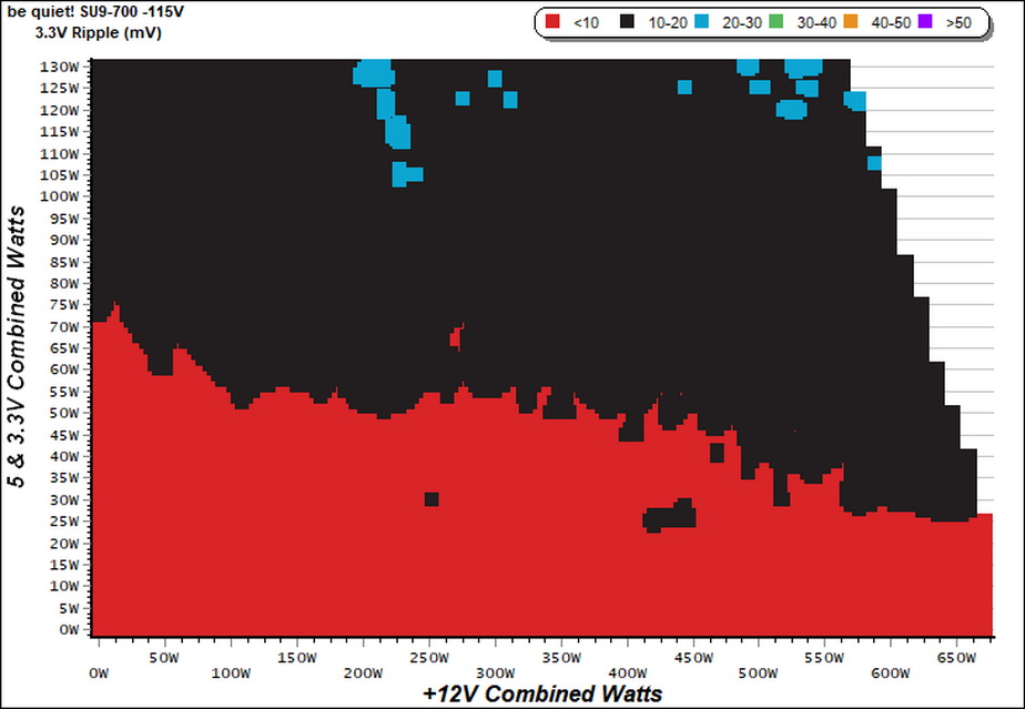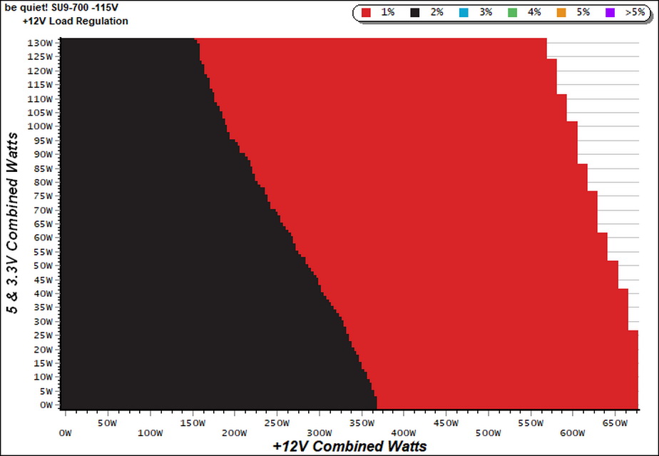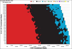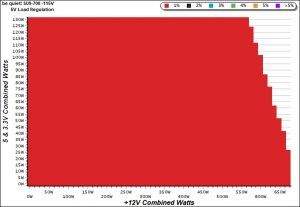 To generate the following charts, we set our loaders to auto mode through our custom-made software before trying more than 1500 possible load combinations with the +12V, 5V, and 3.3V rails. The load regulation deviations in each of the charts below are calculated by taking the nominal values of the rails (12V, 5V, and 3.3V) as point zero. The ambient temperature is between at 30°C (86°F) to 32°C (89.6°F).