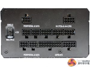 At the rear there is a switch for toggling the +12V rail mode on and off. From the factory the power supply comes configured in single +12V rail mode and we suggest to leave it this way.