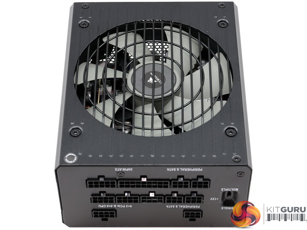 This is quite a large power supply – its 18 centimeters long. Despite the special design of the fan grill, which allows for increased airflow, we believe that it is high time for Corsair to spend some money on a new chassis and improve the external looks of their units.