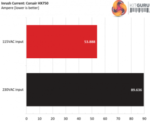 The inrush current is high, with both 115V and 230V input. It might not reach the levels of High Power's platforms, but we would like to see lower readings here.