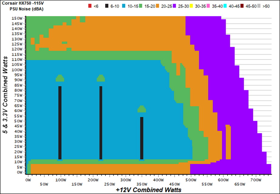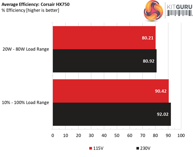 With normal loads the HX750 takes over the third place, while with light loads it is away from the highly efficient Aerocool ACP-750FP7, which is based on Andyson's Titanium platform.