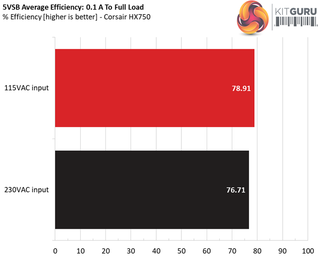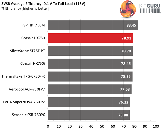 The supply should also achieve higher than 75% efficiency at 5VSB under full load, or with 3A if its max current output on this rail is higher than 3A.