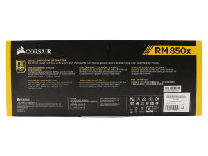 Around the back Corsair provides the unit's dimensions, its most important features and two charts showing the efficiency and fan's noise curves.