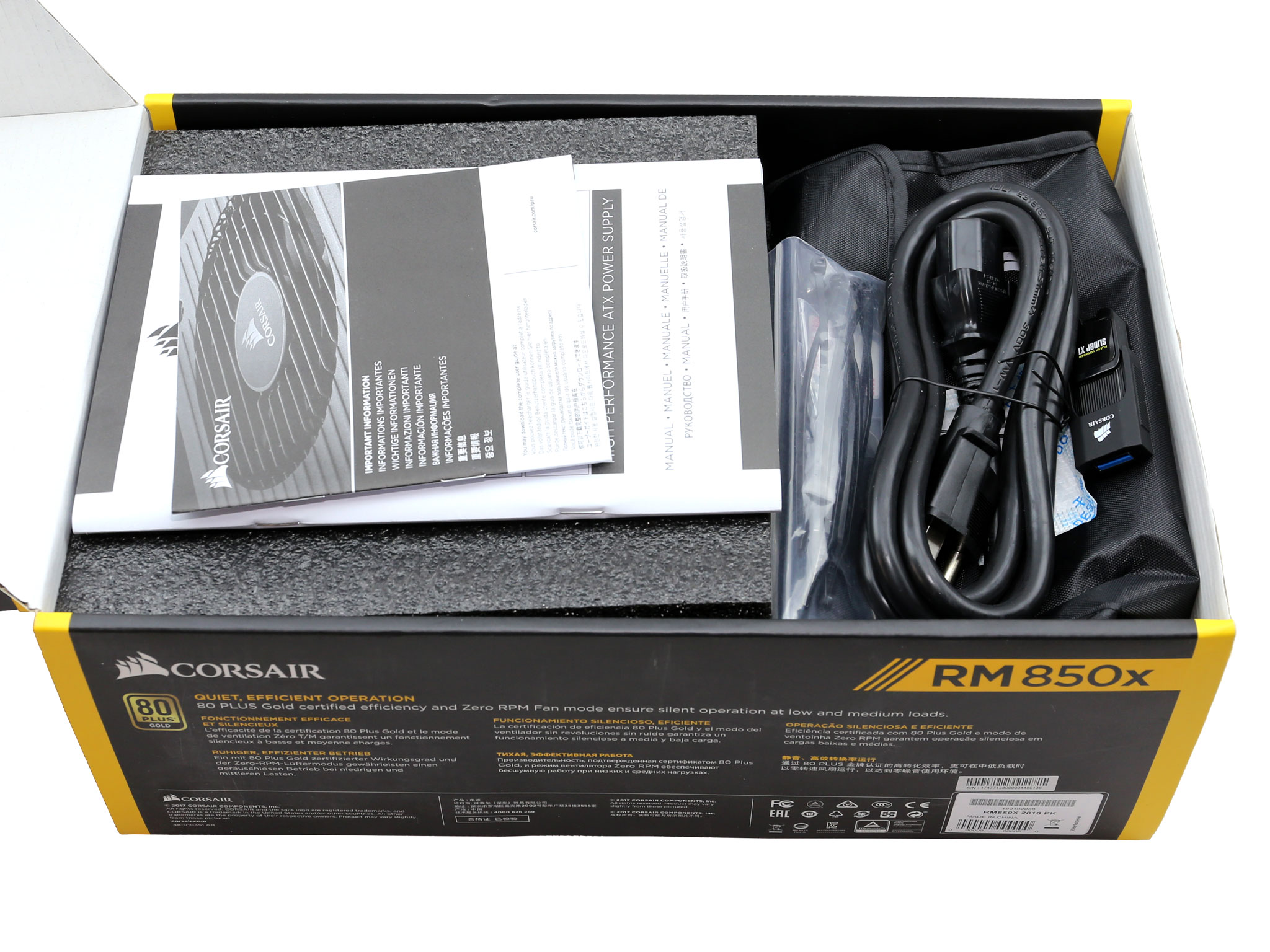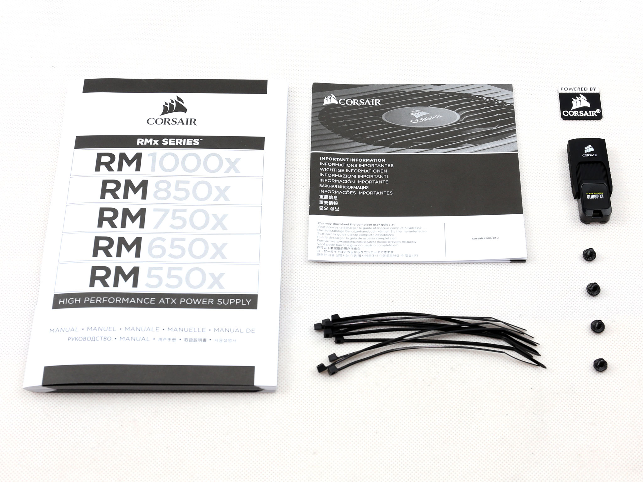 The bundle includes the user's manual, which is common across all RMx models, a warranty leaflet, a number of zip-ties, some fixing bolts, a case badge, a pouch for storing the cables and if you are a reviewer you will also get a Corsair flash drive containing a Chroma report for the specific sample.