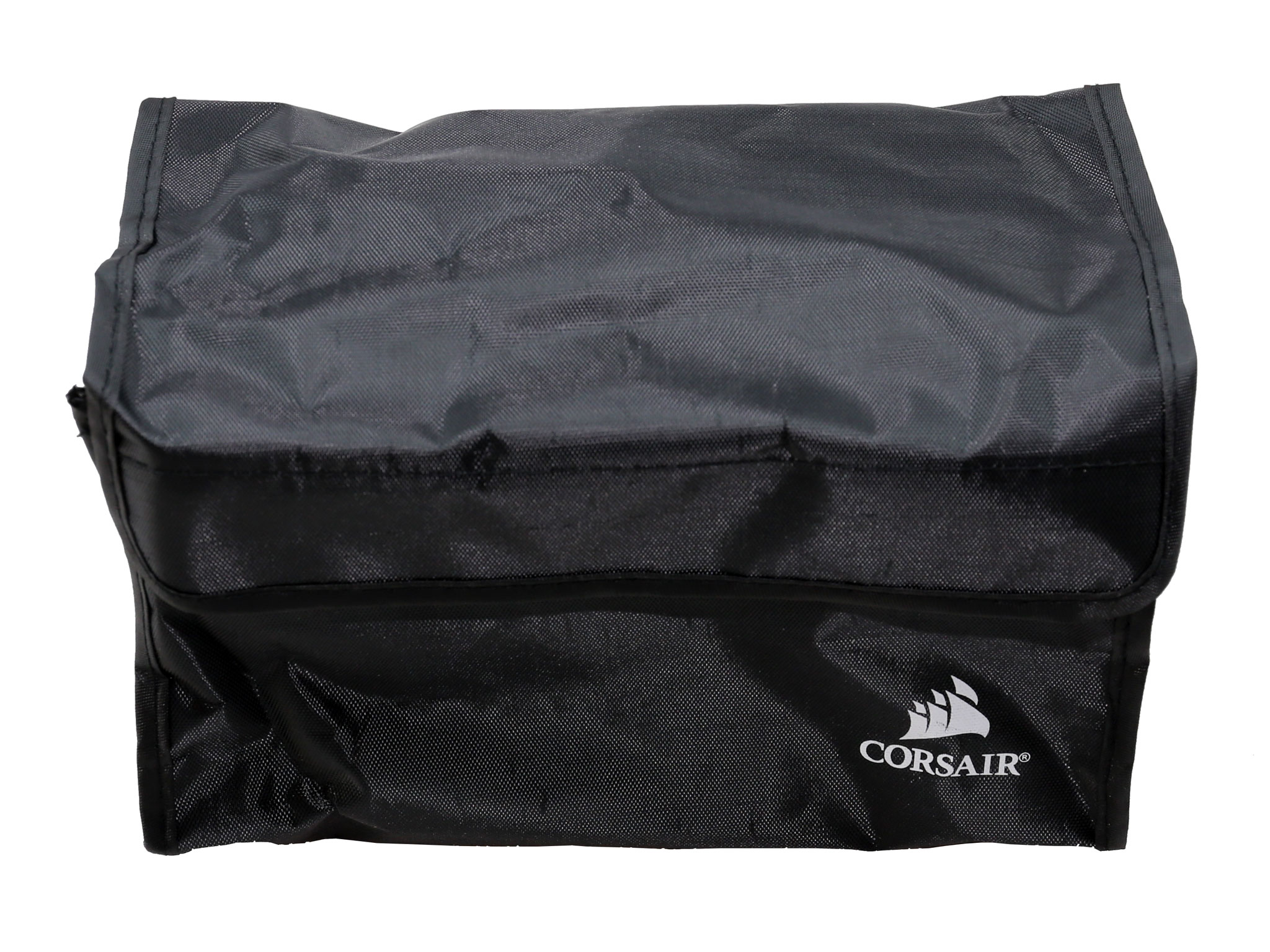 The unit is protected well into the box and it is also stored into a cloth bag, featuring Corsair's logo. It is nice to see products with adequate in-box protection since this minimize the DOA (Dead on Arrival) situations due to extreme shipping conditions, for example when the delivery person decides to play “go fetch” with the package etc.