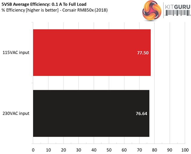 The 5VSB rail's efficiency is close to the competition but still on the low side. It would be great to see at least one reading close to 80%.