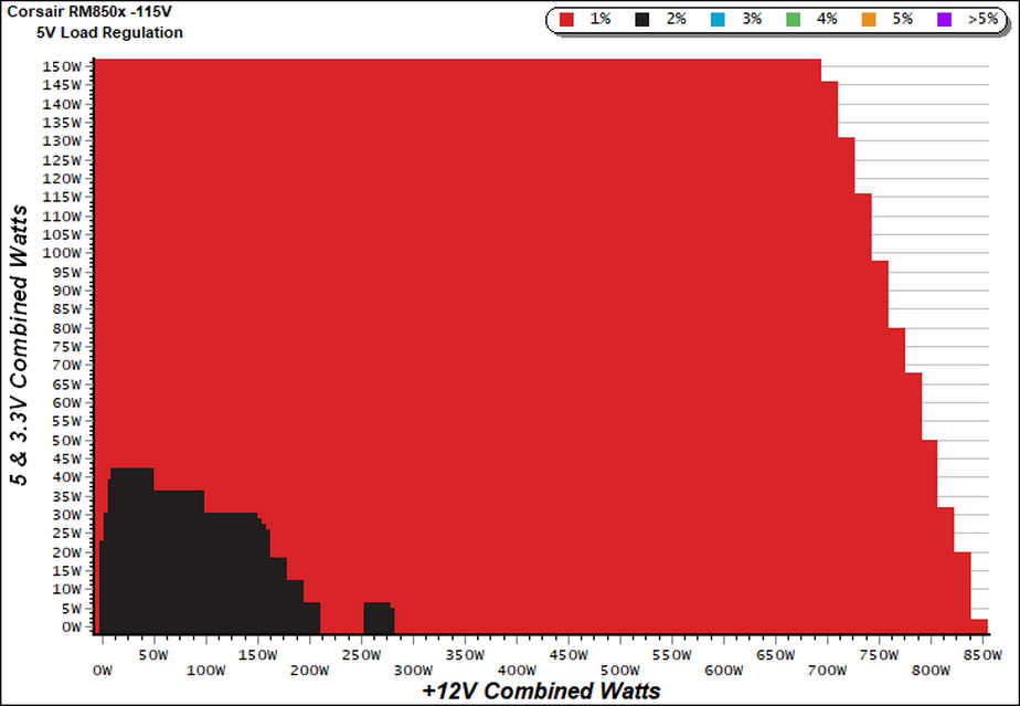 To generate the following charts, we set our loaders to auto mode through our custom-made software before trying more than 1500 possible load combinations with the +12V, 5V, and 3.3V rails. The load regulation deviations in each of the charts below are calculated by taking the nominal values of the rails (12V, 5V, and 3.3V) as point zero. The ambient temperature is between at 30°C (86°F) to 32°C (89.6°F).