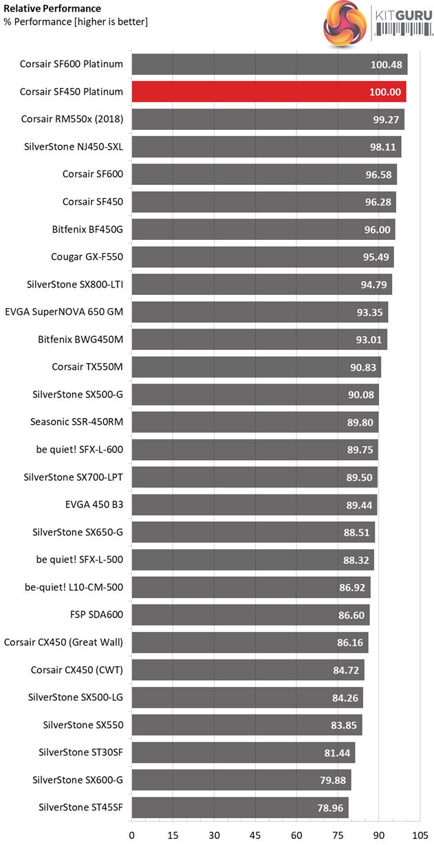 The Gold SF450 achieves a notably higher performance per buck score, thanks to its lower price tag. If you want top-notch efficiency though, then the Platinum model is definitely the one to get.