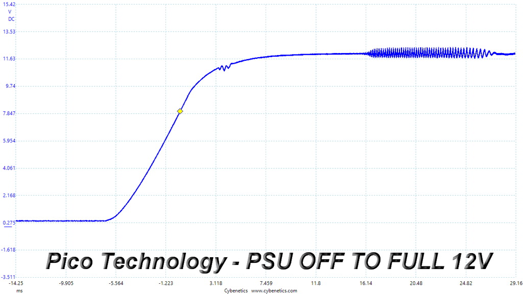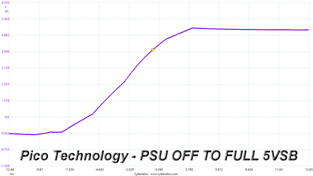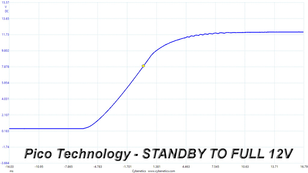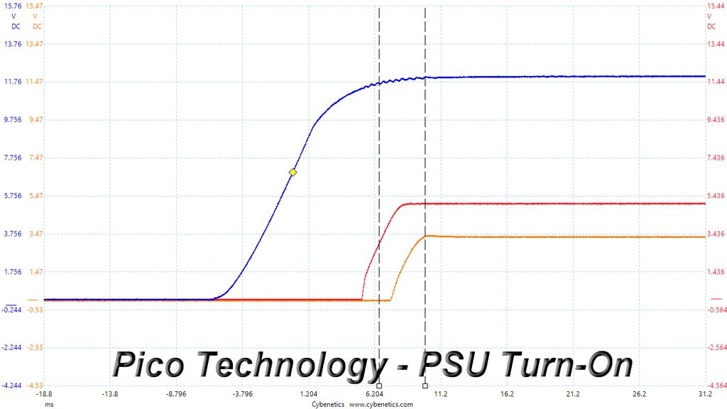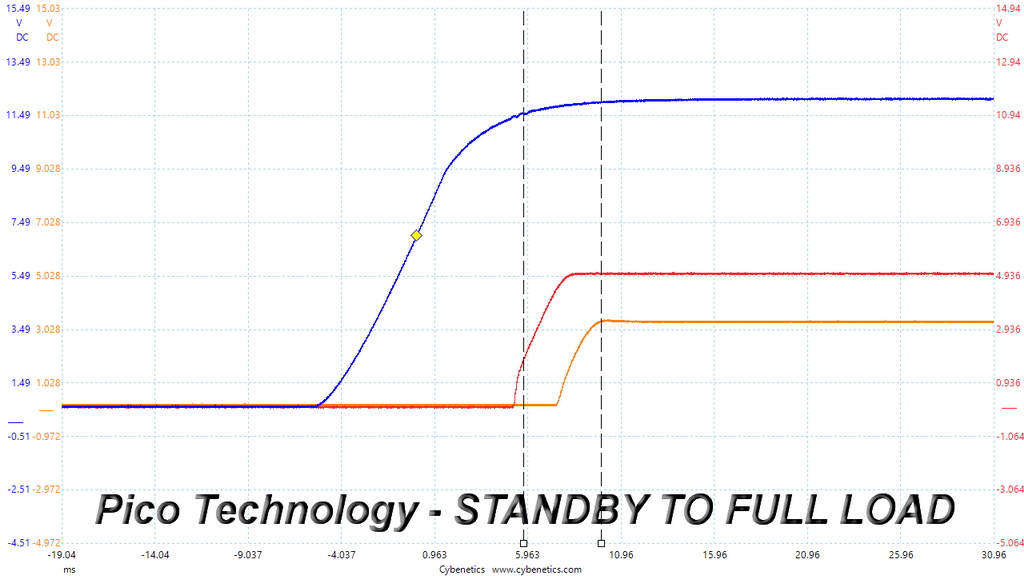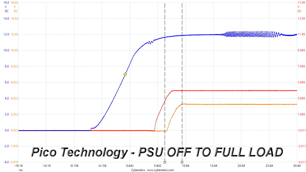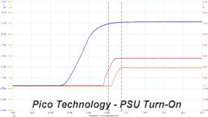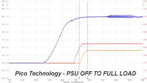 In the next set of tests, we measure the unit’s response in simpler transient load scenarios—during its power-on phase.