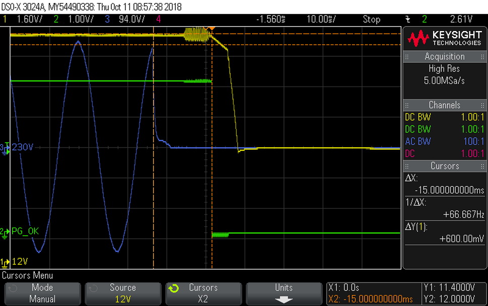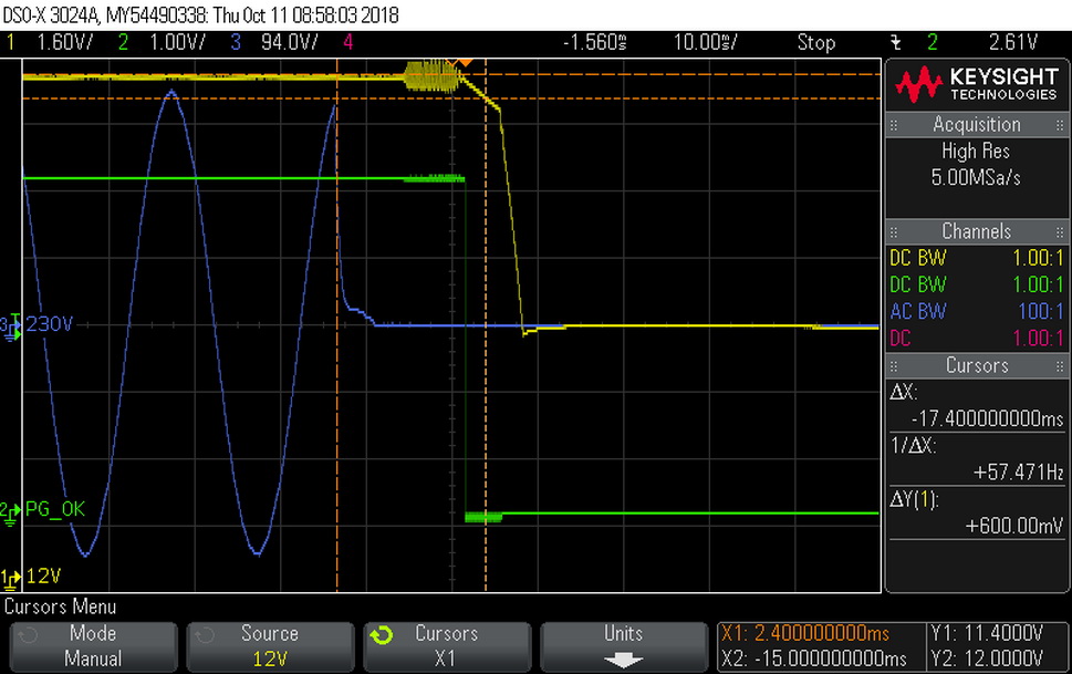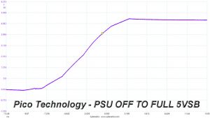 For our first measurement, we turn the PSU off, dial in the maximum current the 5VSB rail can handle, and switch the PSU back on.