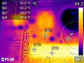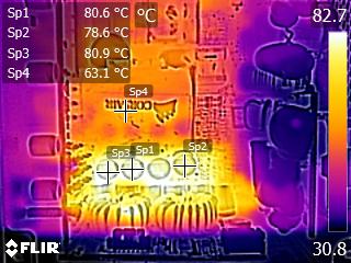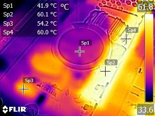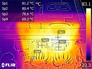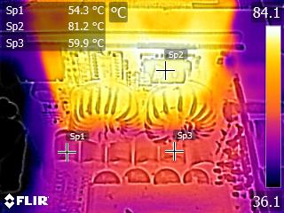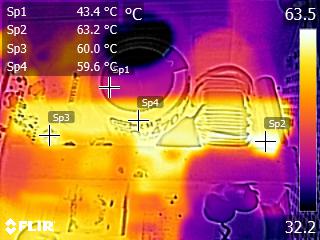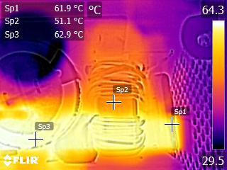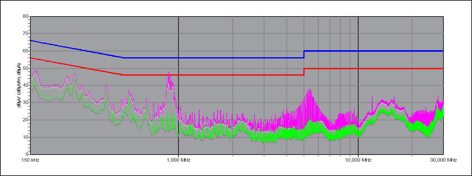 The conducted EMI emissions are low, as you can see in the graph above. The unit's EMI filtering stages do a great job.