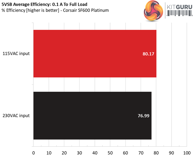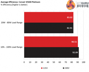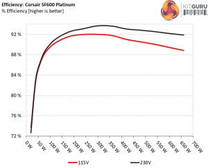 Corsair took the already very good SF600 Gold model and delivered markedly superior performance with this new Platinum design. The overall performance of the Platinum model is around 4% higher. Additionally in regards to noise output, the Corsair SF600 Platinum is very much improved over the older model.