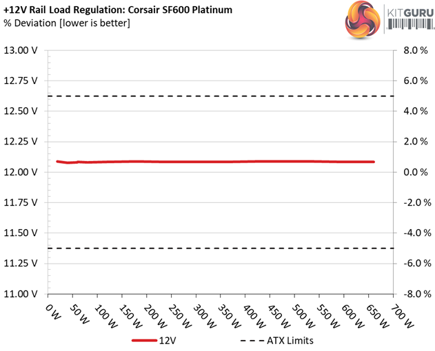 The SFX form factor doesn't provide enough space for a large number of filtering caps in the secondary side, so you should not expect to see the jaw-dropping results that some of the ATX units achieve. Nonetheless, the SF600 Platinum registers a very good overall performance. We would be fully satisfied though if ripple at +12V was close to 25mV, in the worst case scenario.