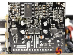 The continuous output rated temperature is pretty high at 50°C and all necessary protection features are present. The cooling duties are handled by a 92mm rifle bearing fan which is driven by a relaxed speed profile. There is also a semi-passive mode which cannot be deselected though. Finally, the provided warranty is long at seven years. To the best of our knowledge there is no other SFX unit featuring a longer warranty.