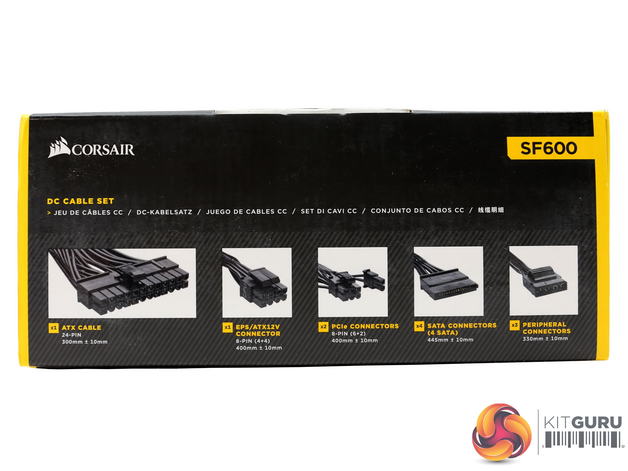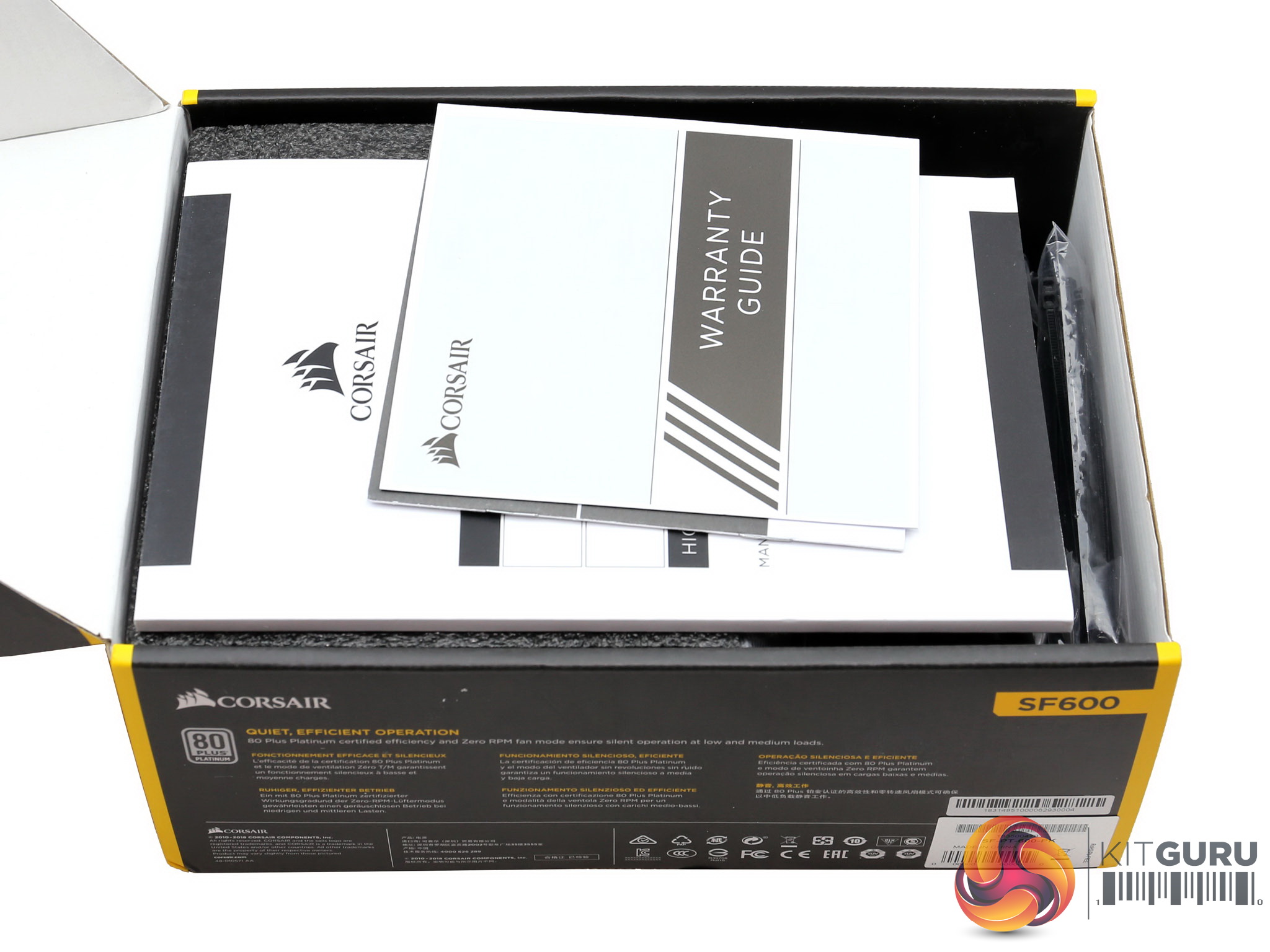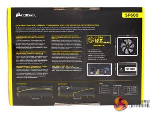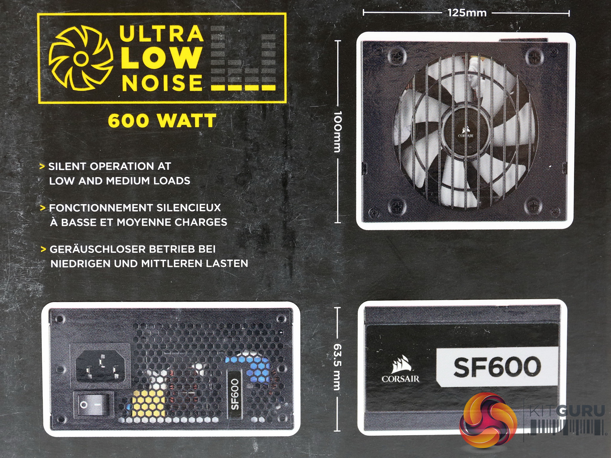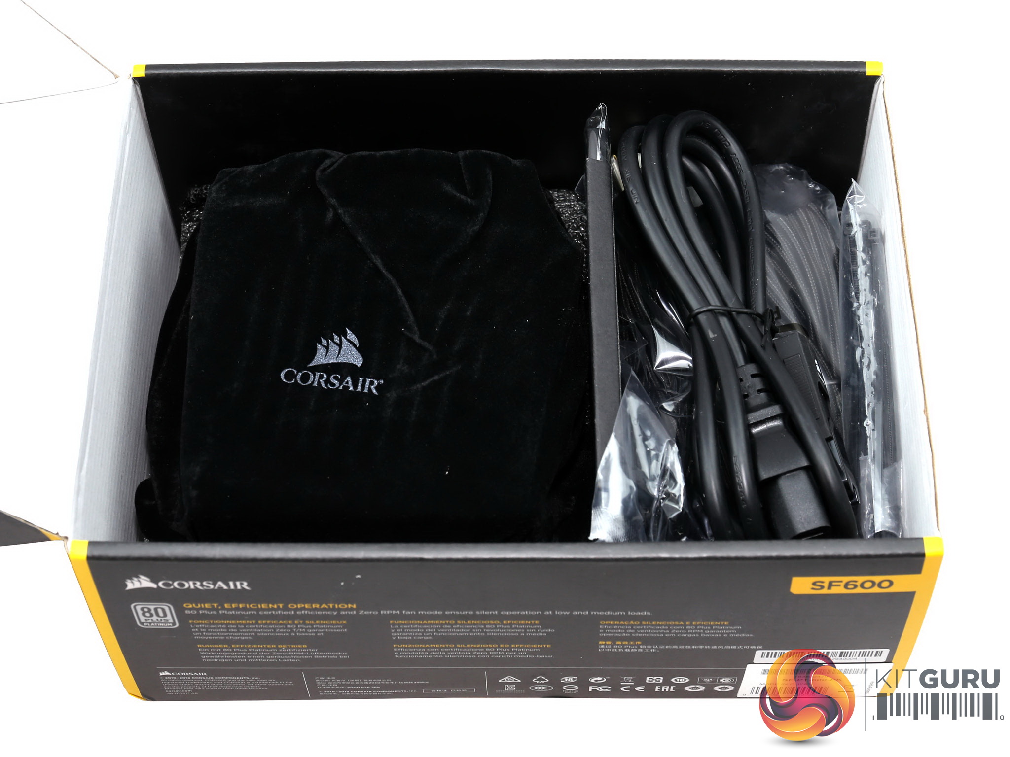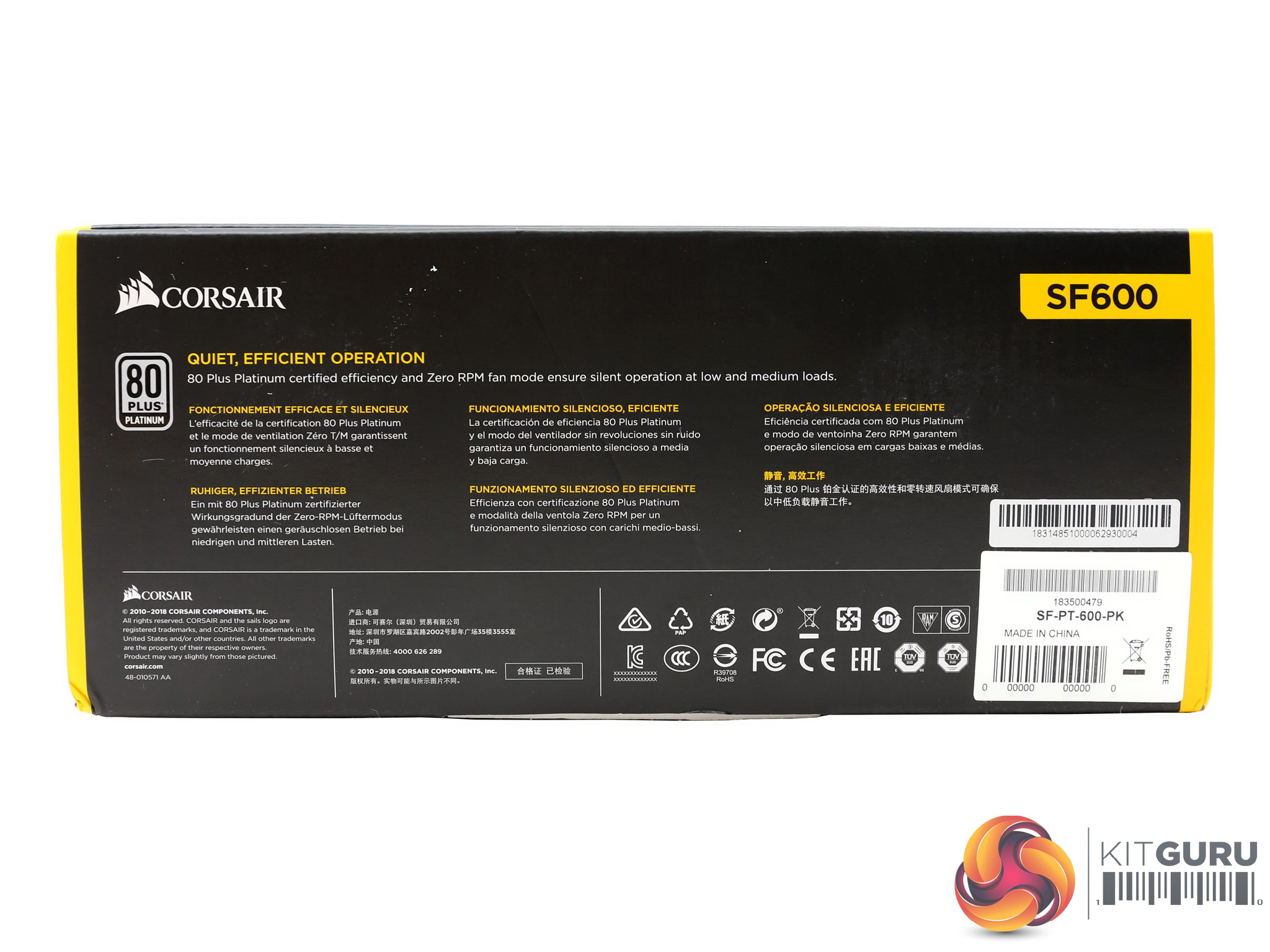 The package is small and we are surprised that Corsair haven't highlighted the Platinum efficiency in big letters on the front of the box. There are two easy ways though to distinguish the plain SF600 from the SF600 Platinum.