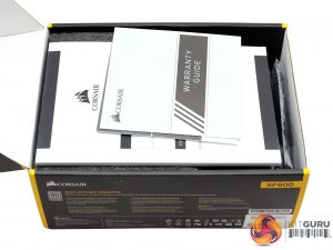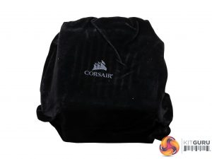 The power supply is well protected in the box since it is covered by packing foam. It is also stored in a nice velvet bag, featuring Corsair's logo. As usual, all paperwork sits on top of the product.