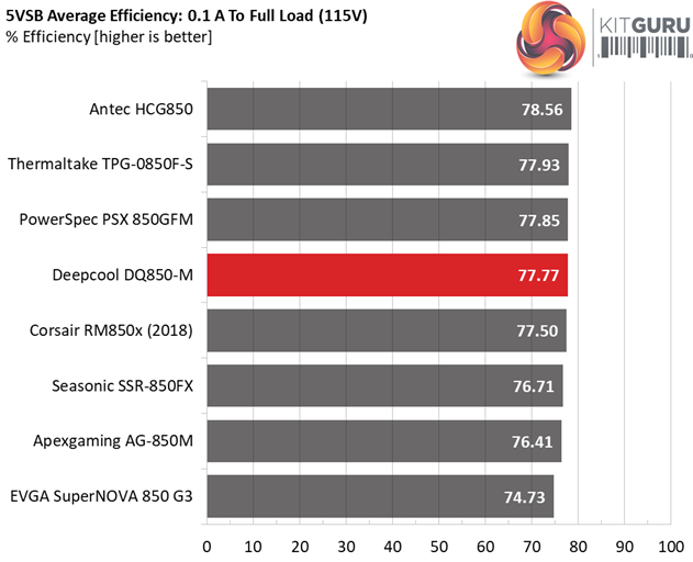 Typically for a high-end CWT platform, the 5VSB rail's efficiency is at good levels.