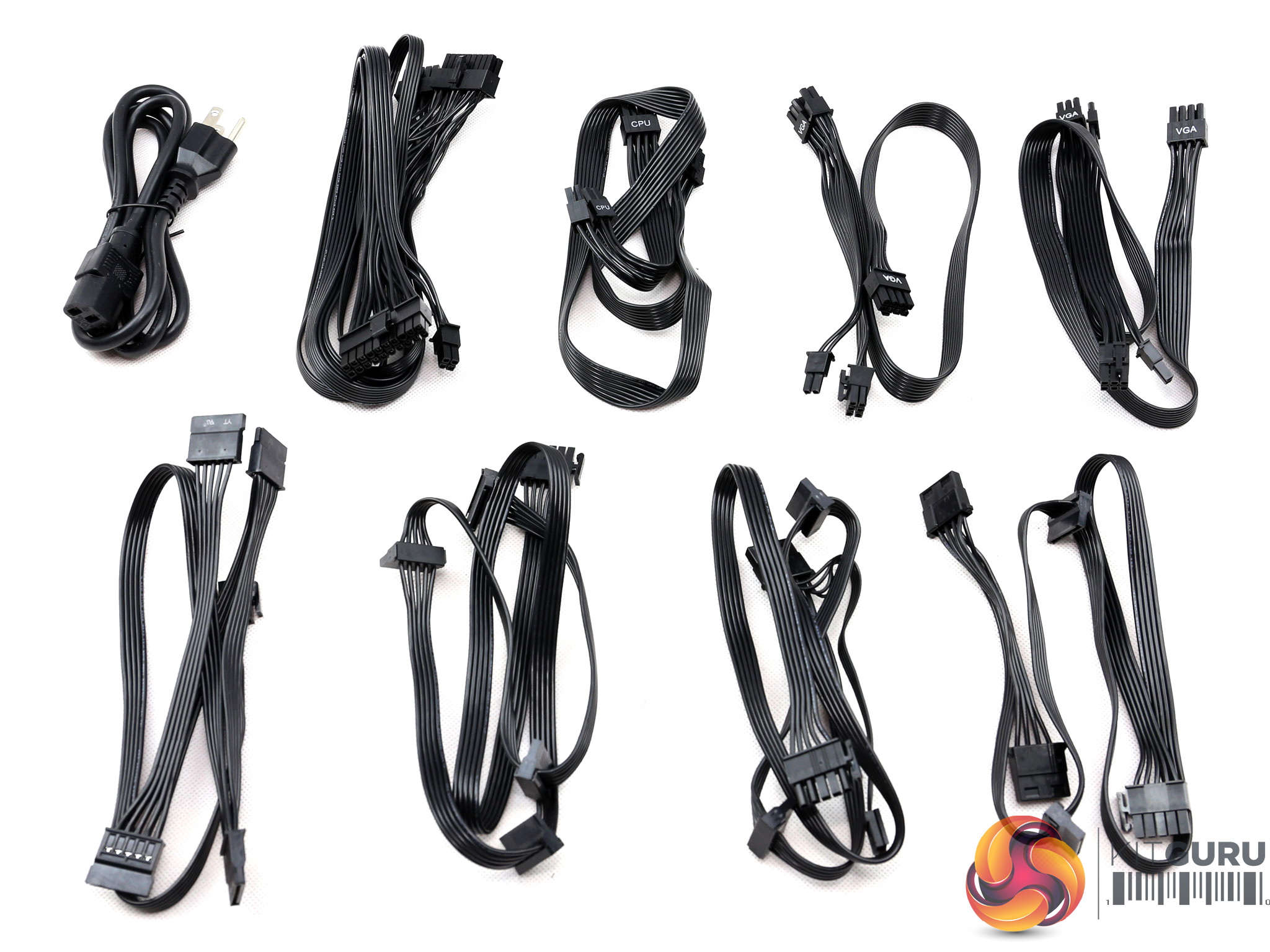 All cables are long enough and the distance between all peripheral connectors (apart from a single 4-pin Molex) is ideal at 15 cm. What strikes us as odd is the addition of a fixed FDD connector in one of the modular cables. FSP should add instead a 4-pin Molex and provide an inexpensive 4-pin Molex to FDD adapter. This would also raise the number of 4-pin Molex connectors to four.