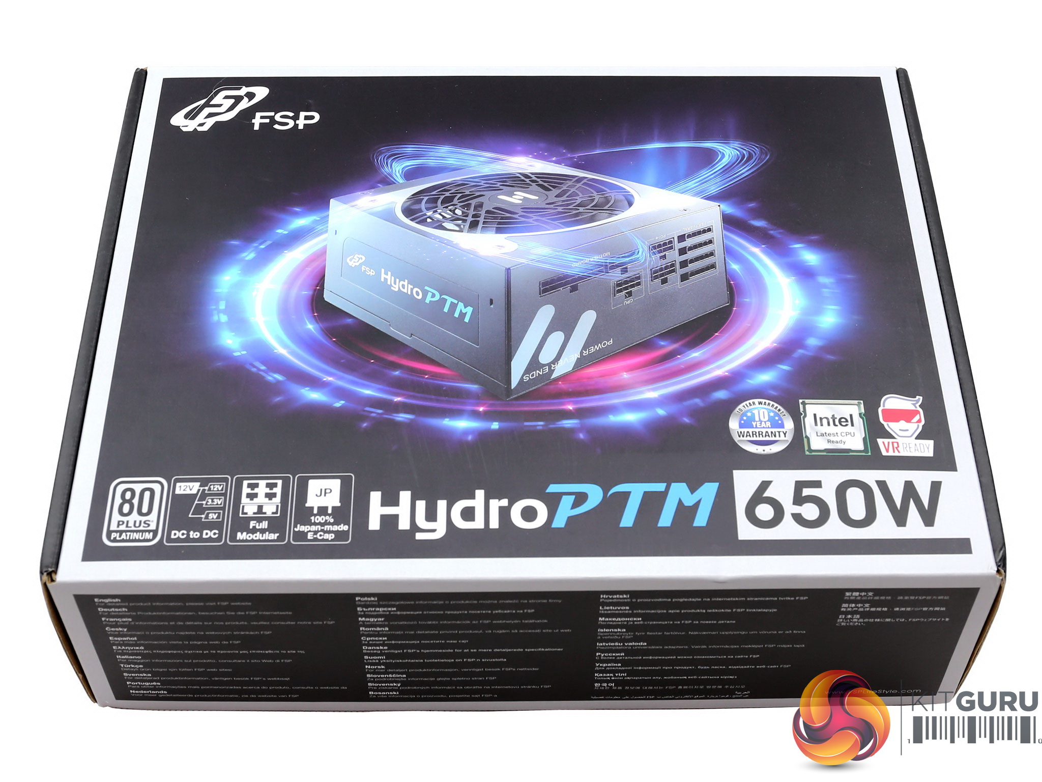 There is an interesting photo at the back of the box, showing the unit's internals. FSP provides a description of the platform's major features and there is a long feature list as well – mentioning some interesting information about the supply.
