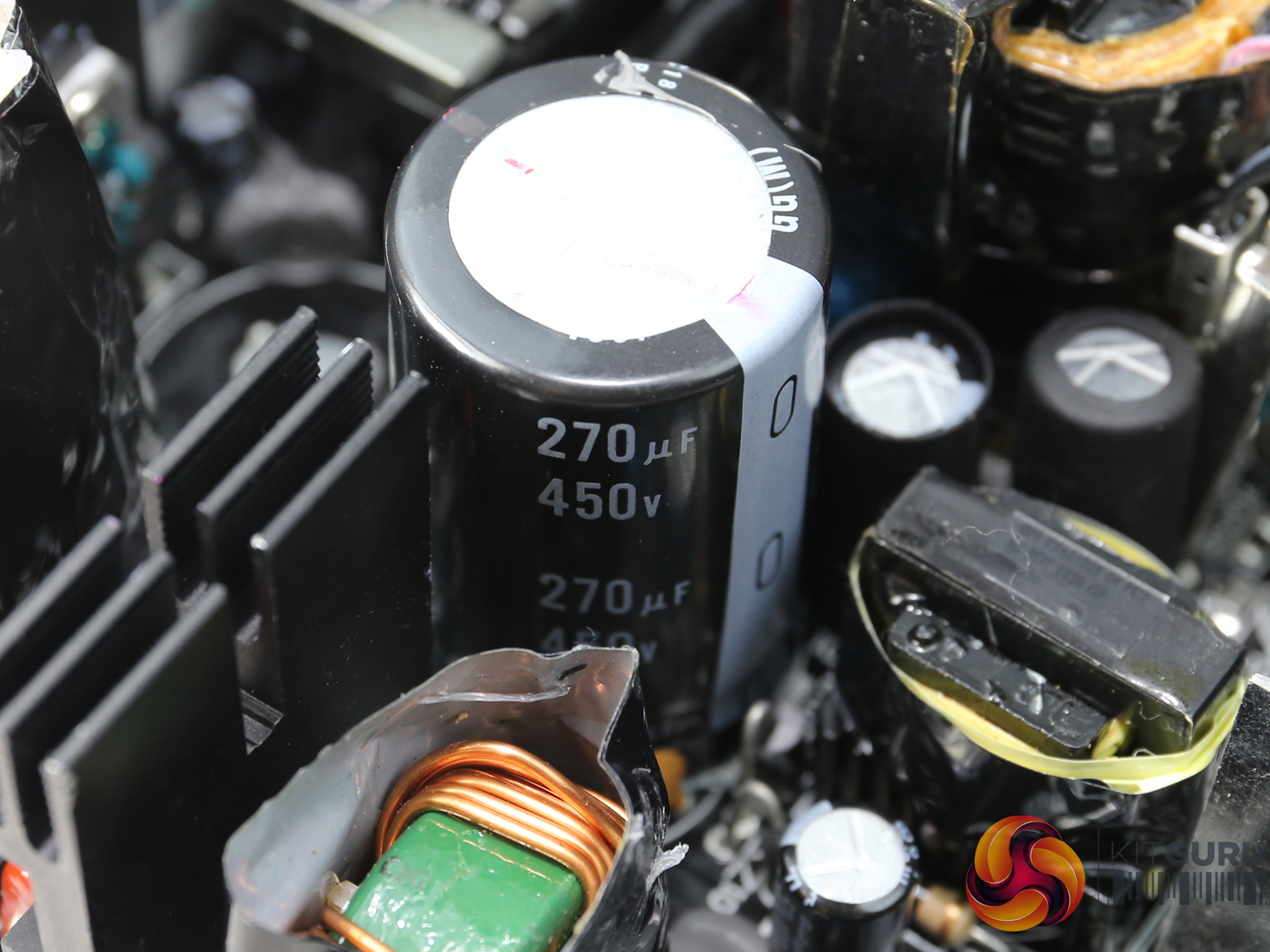 2x Nichicon GG (450V, 270uF each or 540uF combined, 2000h @ 105°C) |