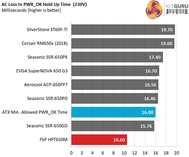The hold-up time is low, which is a great shame for a high-end 650W unit.