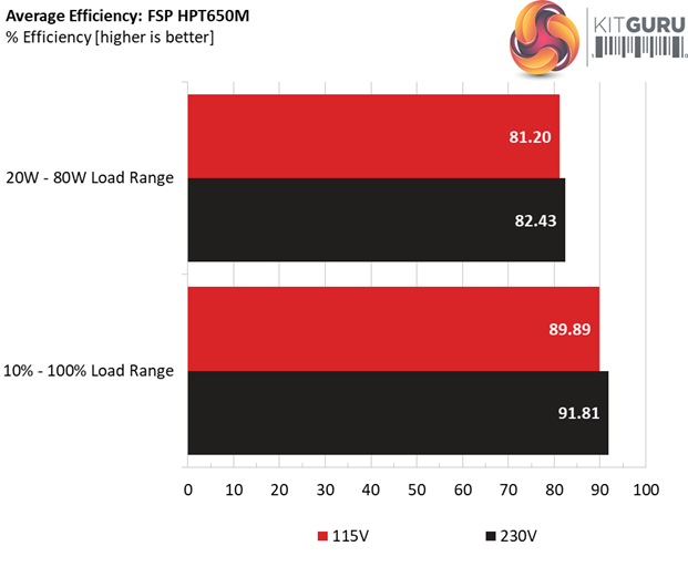 We would like to see higher efficiency in the first test. In the rest tests the unit passes the 80% mark. During the entire light load testing procedure the fan spins at a very low speed, producing equally low noise, which most likely most users won't even notice.