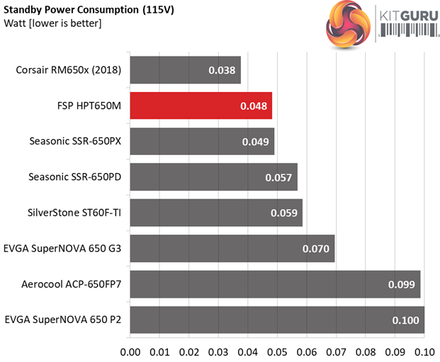 FSP is known for its highly efficient 5VSB circuits. The moment other manufacturers don't care so much about this rail, FSP's engineers strive to provide the best possible 5VSB efficiency and the results are just great! This unit has one of the most efficient 5VSB rail's that we have ever encountered.