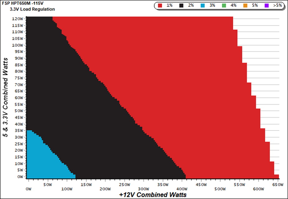 To generate the following charts, we set our loaders to auto mode through our custom-made software before trying more than 1500 possible load combinations with the +12V, 5V, and 3.3V rails. The load regulation deviations in each of the charts below are calculated by taking the nominal values of the rails (12V, 5V, and 3.3V) as point zero. The ambient temperature is between at 30°C (86°F) to 32°C (89.6°F).