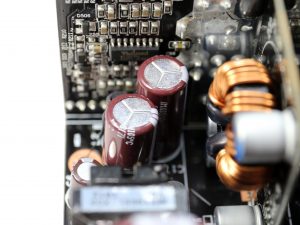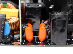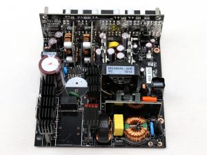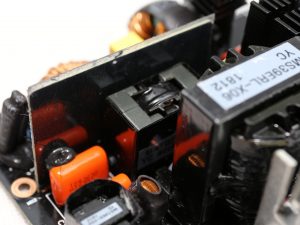 There is an NTC thermistor for protection against large inrush currents, and a bypass relay supports it. We expect to find this relay in every high-end platform since besides a small efficiency boost it also allows the fast cool down of the thermistor, so inrush currents are always kept under control (as long as the used thermistor is up to the task of course).