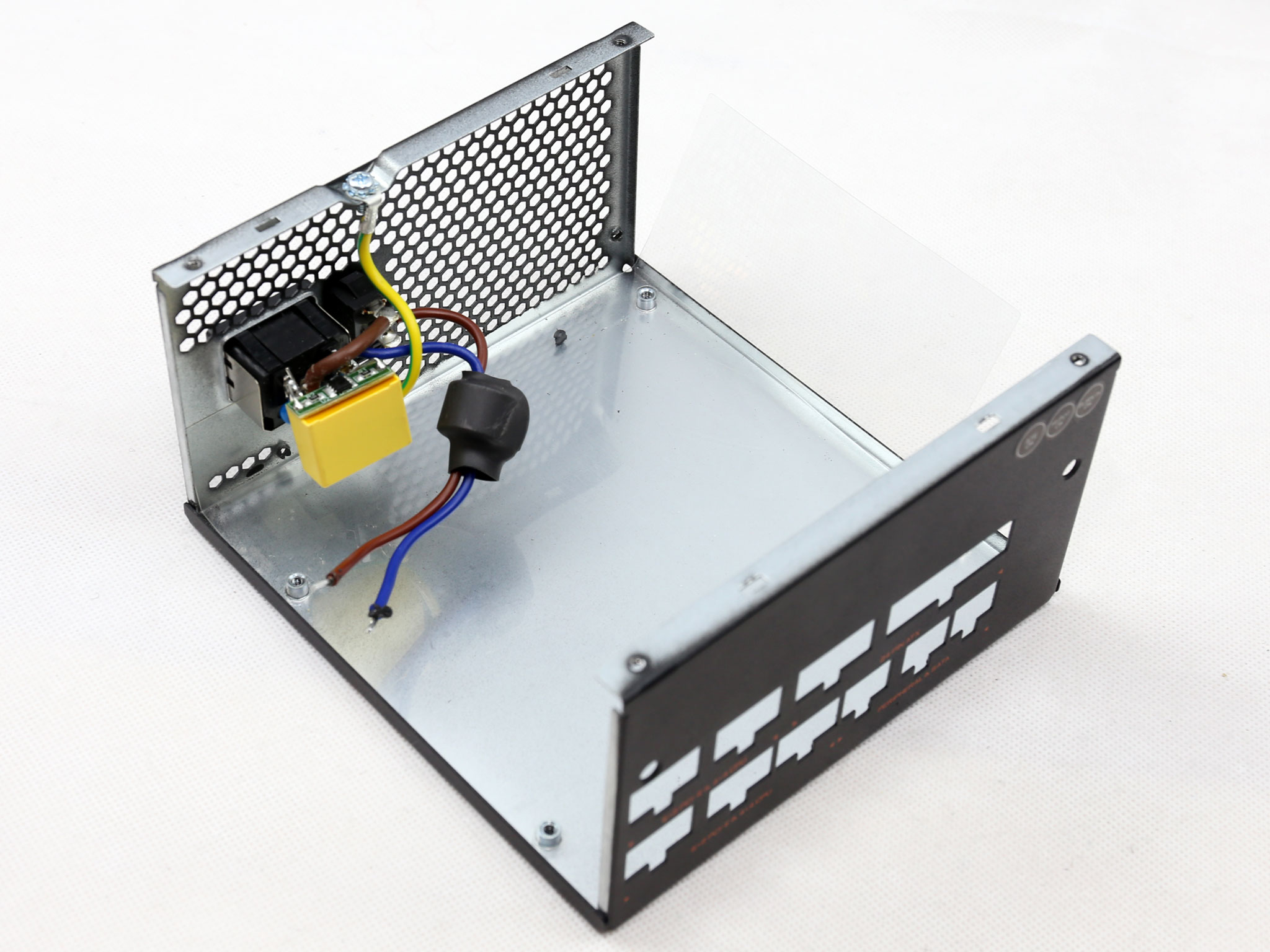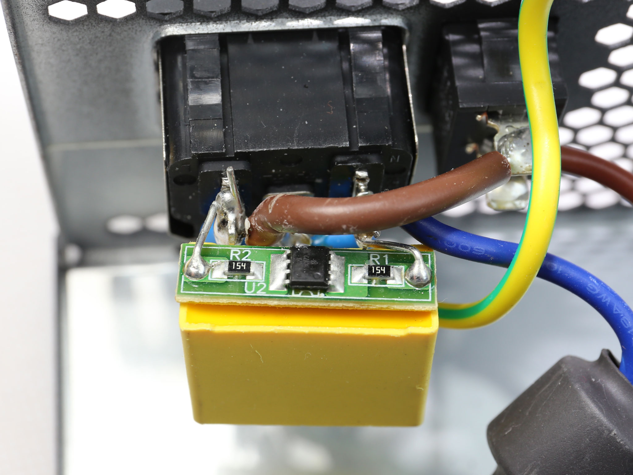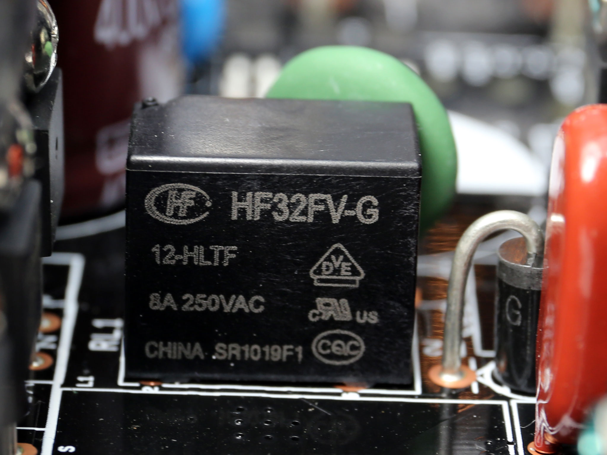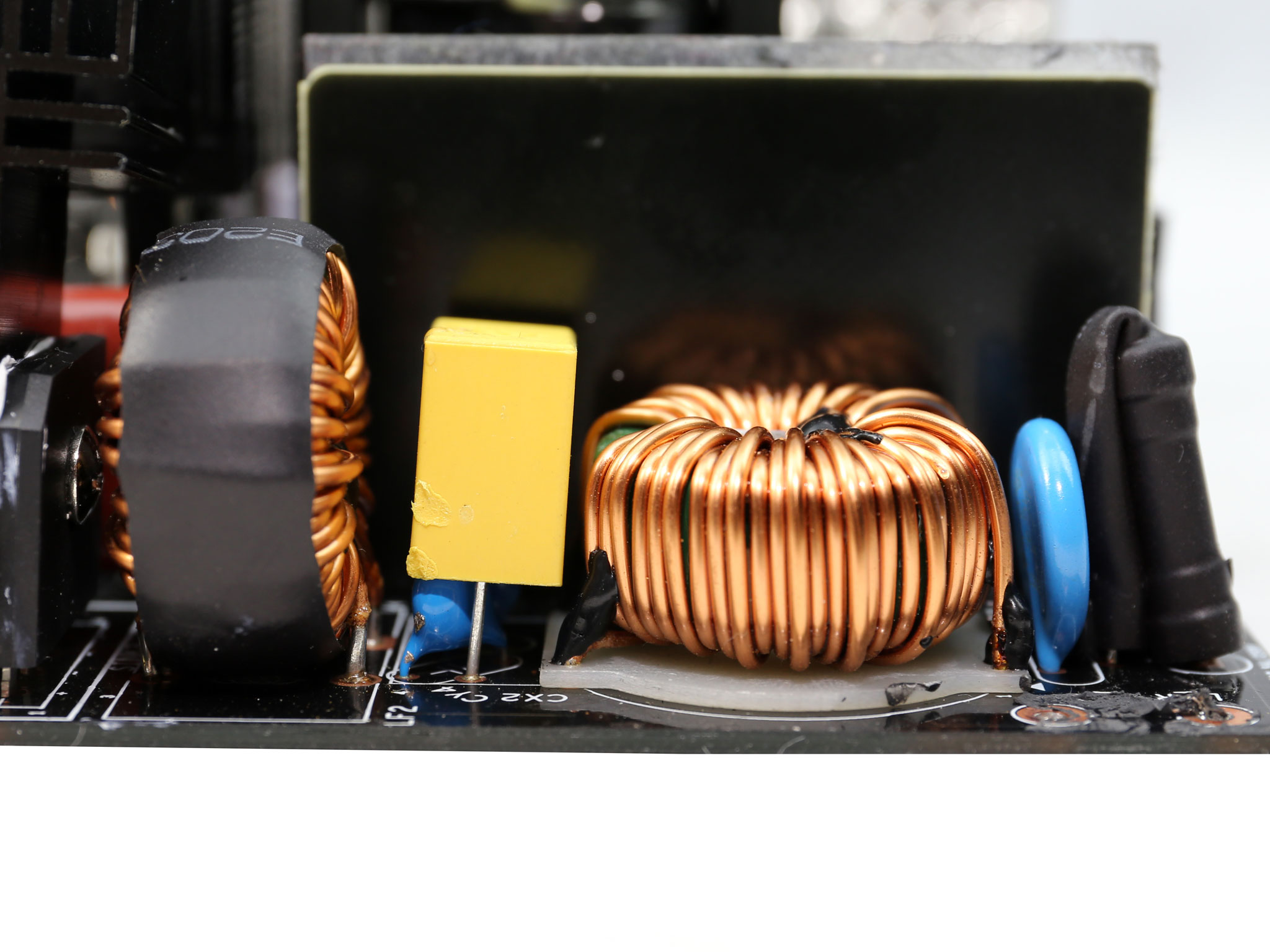 There is an NTC thermistor for protection against large inrush currents, and a bypass relay supports it. We expect to find this relay in every high-end platform since besides a small efficiency boost it also allows the fast cool down of the thermistor, so inrush currents are always kept under control (as long as the used thermistor is up to the task of course).
