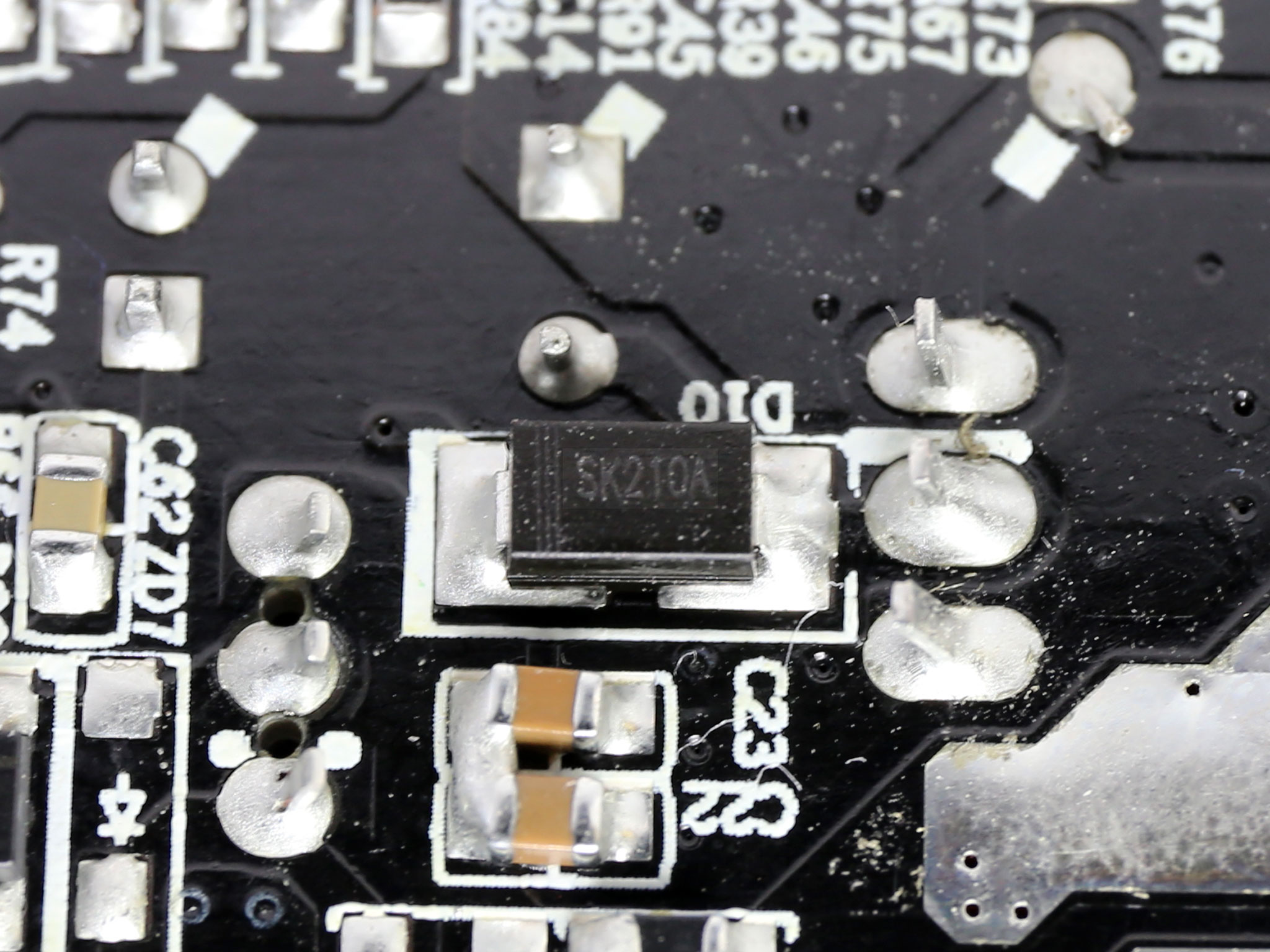 The soldering quality on the main PCB is quite good. We also noticed that in our sample at least the solder most likely contains lead, since it was quite easy to desolder parts. In our opinion lead-free solder although it is supposed to be more environmental friendly, in the end it does more damage because of the increased number of failures in the devices that use it.