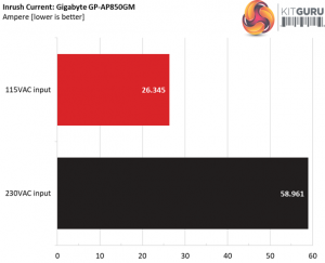 The inrush current is low with 115V and a little higher than the normal with 230V.