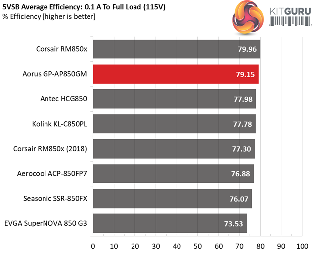 The 5VSB rail is highly efficient and stacks up pretty well against similar capacity units.