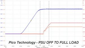According to Intel’s most recent Power Supply Design Guide (revision 1.4) the +12V and 5V voltages must be equal or greater than the 3.3V rail’s output at all times, during the power-up and normal operation. For our first measurement, we turn the unit off and switch it back on without any load in any of the rails.