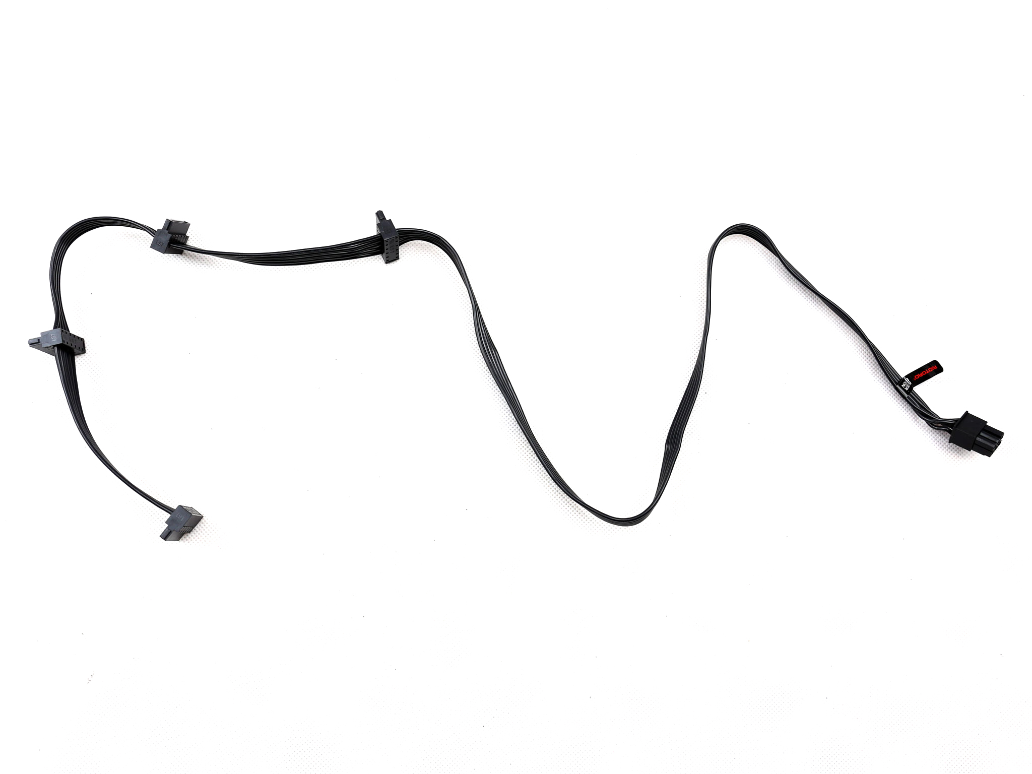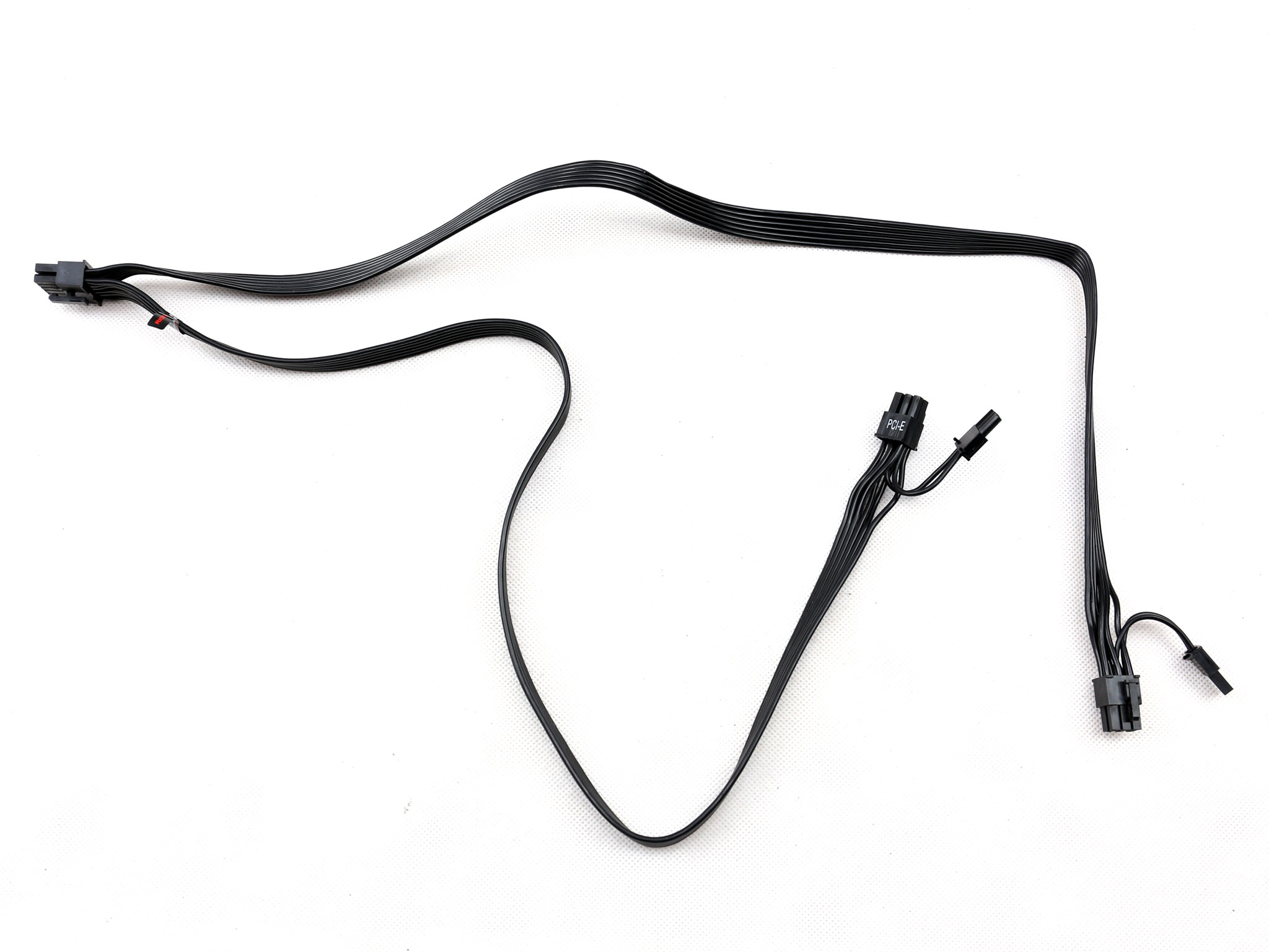 The PCIe cable that uses a single 12-pin socket from the PSU's modular board, and provides four 6+2pin connectors, does trouble us as well. This implementation can put too much stress on the socket and the corresponding connector.