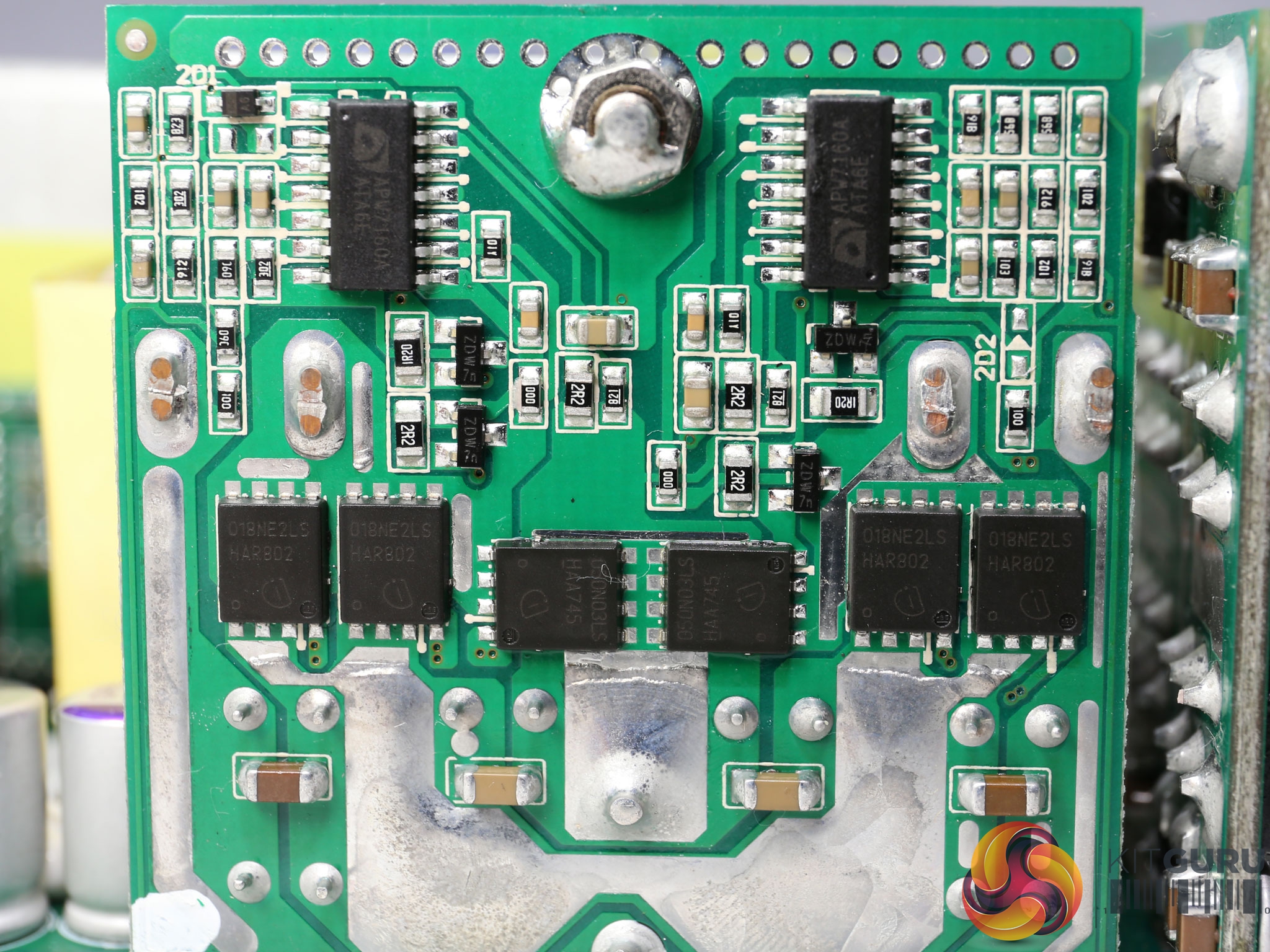 This platform uses highly overrated components, in order to stress them as low as possible even during prolonged full load scenarios. Two powerful bridge rectifiers along with potent switching FETs are used in the primary side, while on the secondary side a great number of +12V FETs regulate the +12V rail.