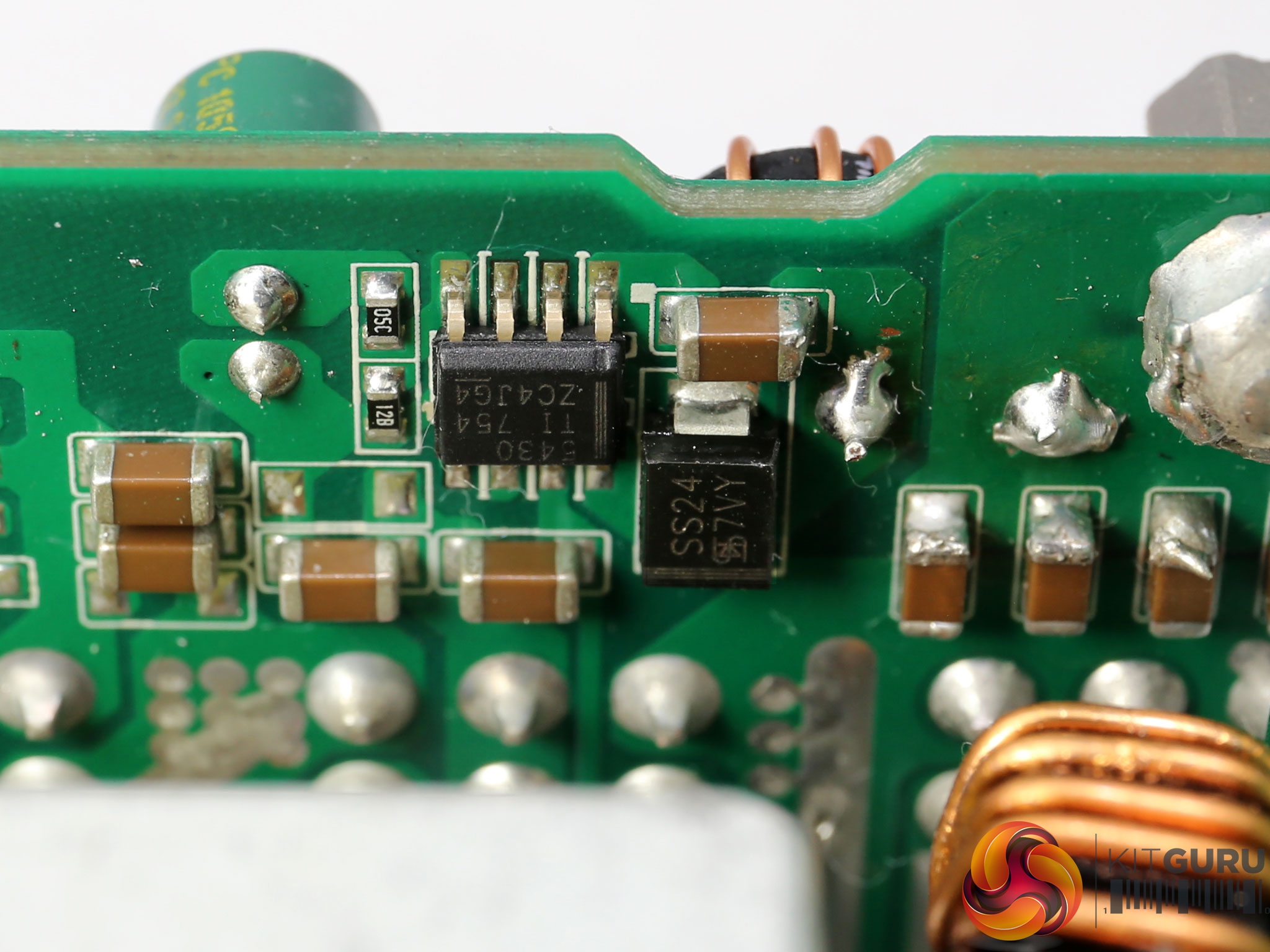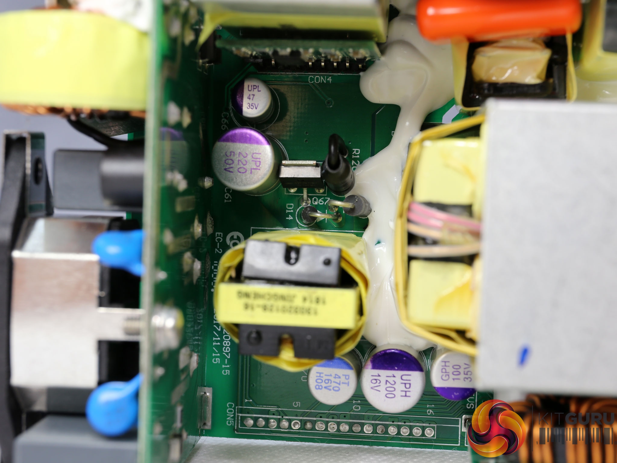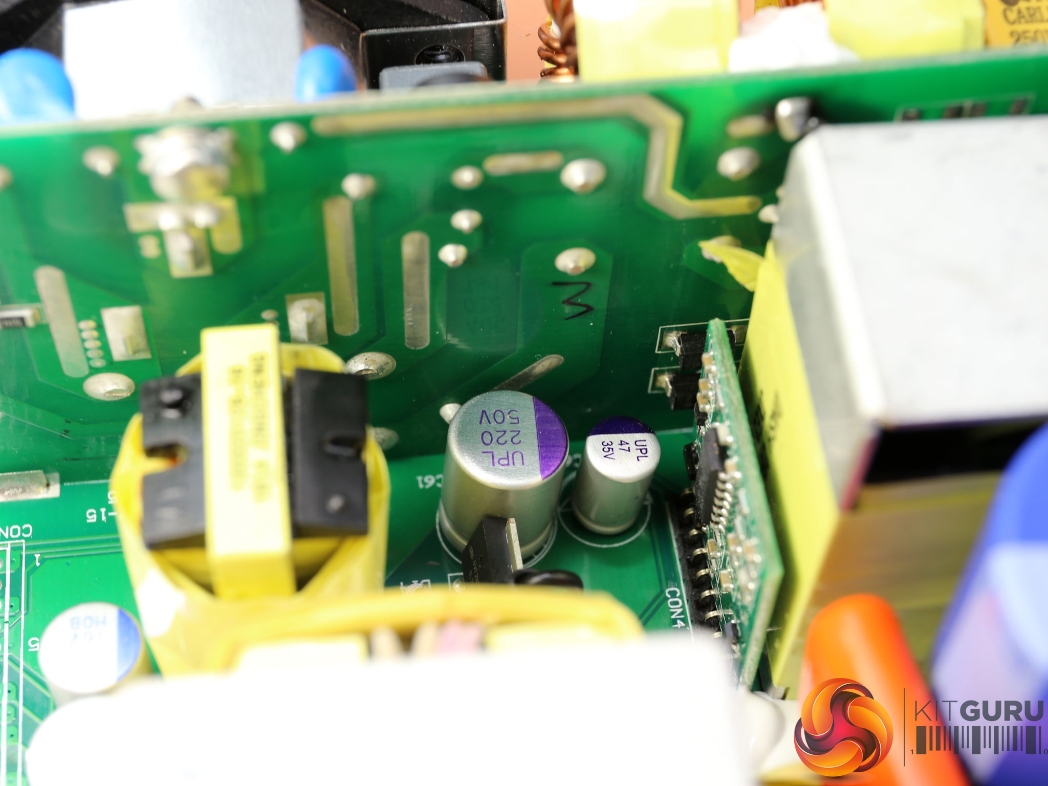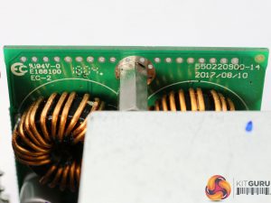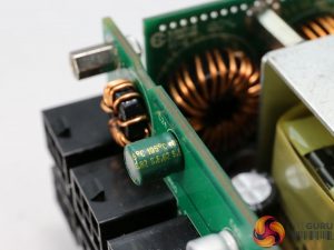 In the secondary side a synchronous rectification scheme is used, meaning that FETs regulate the +12V rail, while the minor rails are handled by a couple of DC-DC converters. All caps but the bulk cap and one installed on the modular board are polymers. They are of high quality since they are provided by respected manufacturers and belong to good lines.