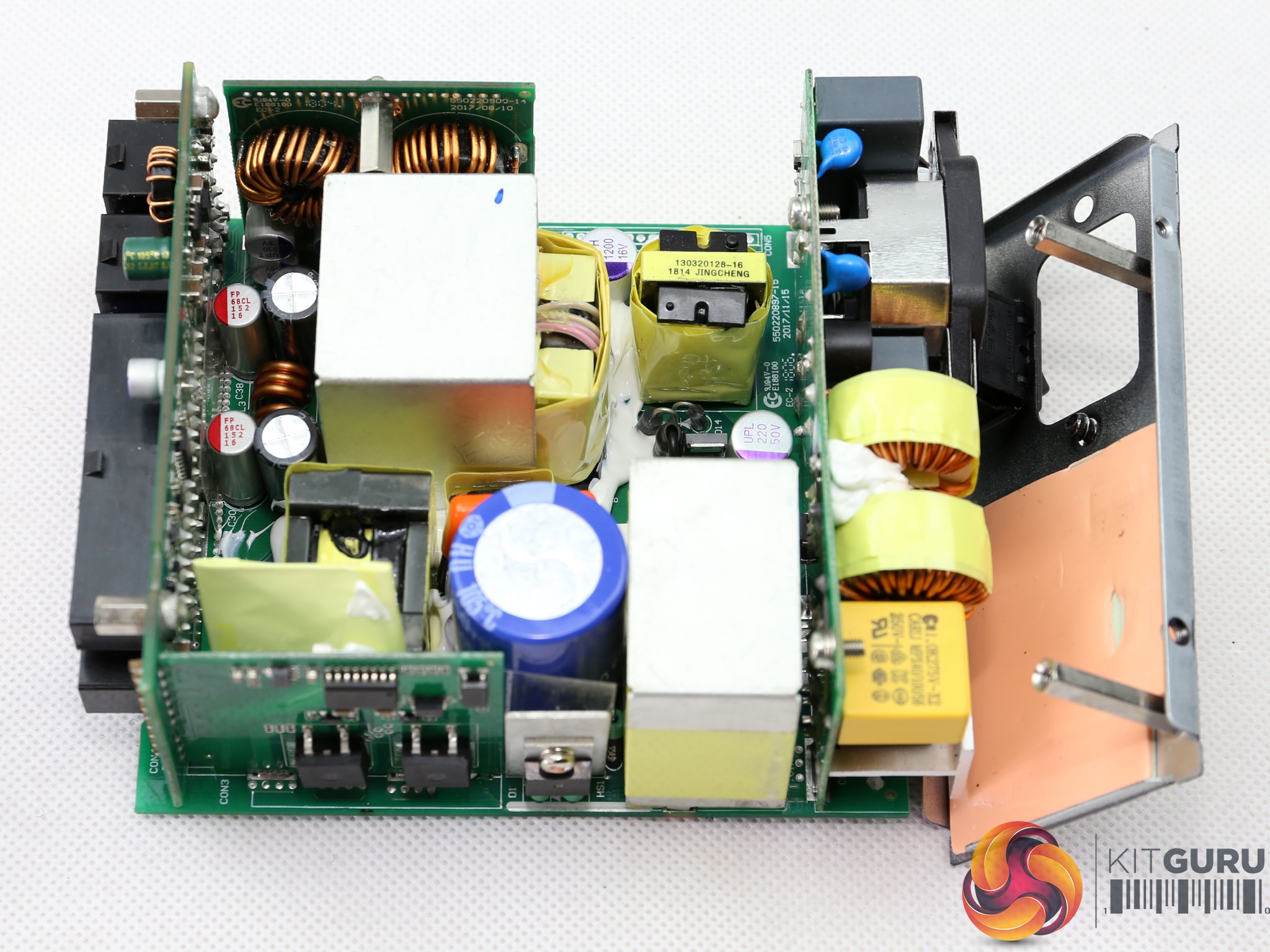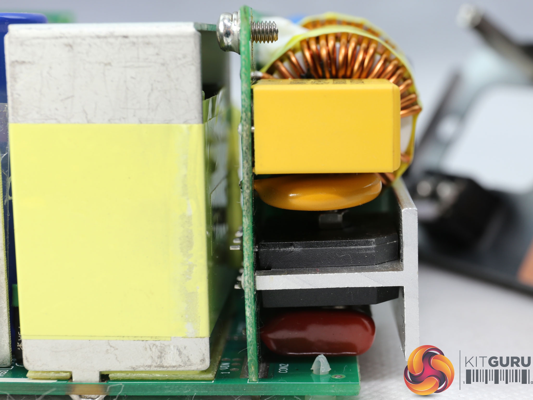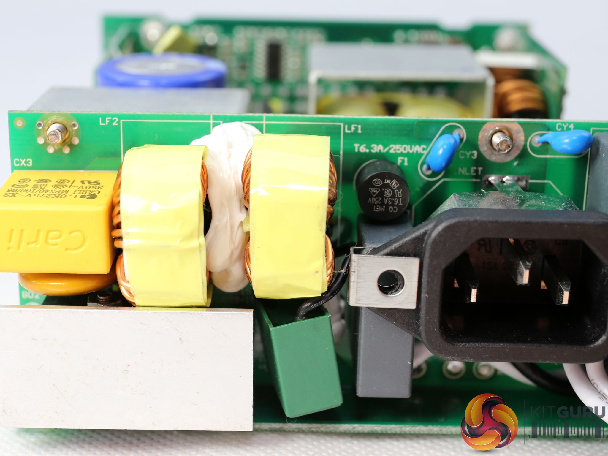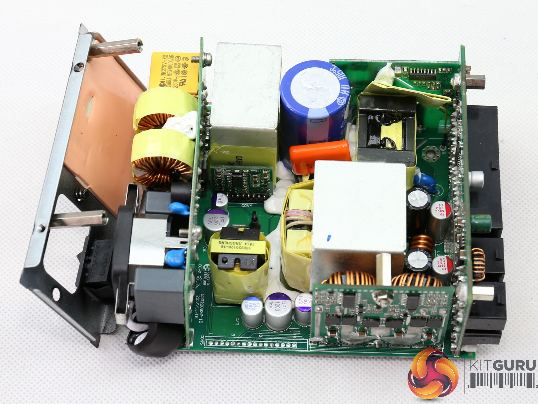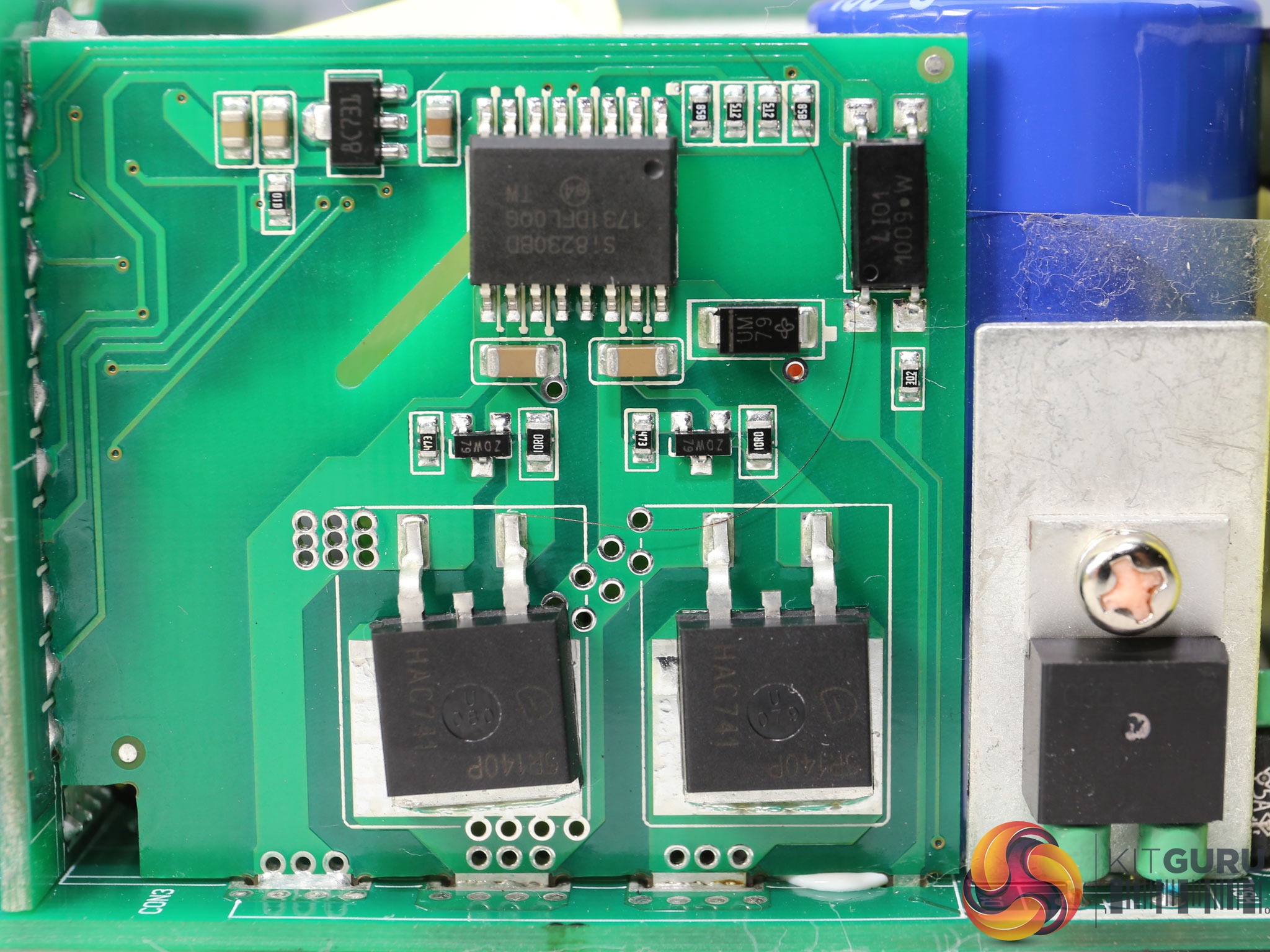 Two powerful GBU15J bridge rectifiers are used in this power supply. They would be totally overkill in a ‘normal' 450W PSU, but this is a passive SFX-L unit so the more capable the parts the more resilient they are to increased operating temperatures.