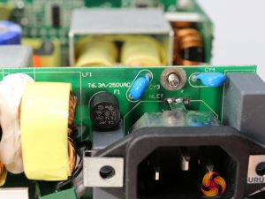 Almost all filtering caps are polymers and are provided by FPCAP and Unicon. The only electrolytic cap is installed on the PSU's modular board.
