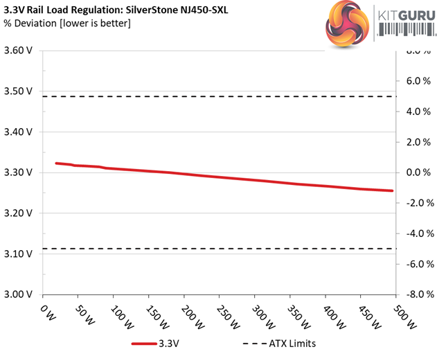 The load regulation at +12V is tight, while at 5V and 3.3V is within the 2% range, so it is satisfactory. Finally, the 5VSB rail stays in the 3% range.