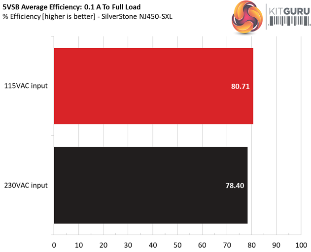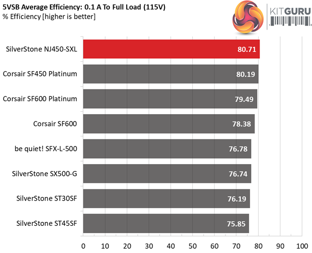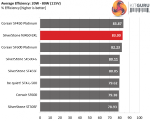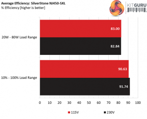The efficiency levels that this platform achieves under light loads is jaw dropping! Even with 20W load the NJ450-SXL achieves well over 70% efficiency.