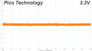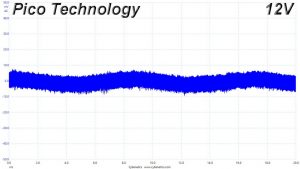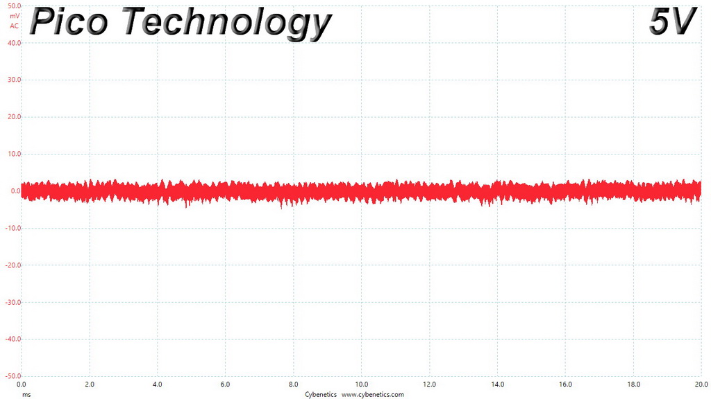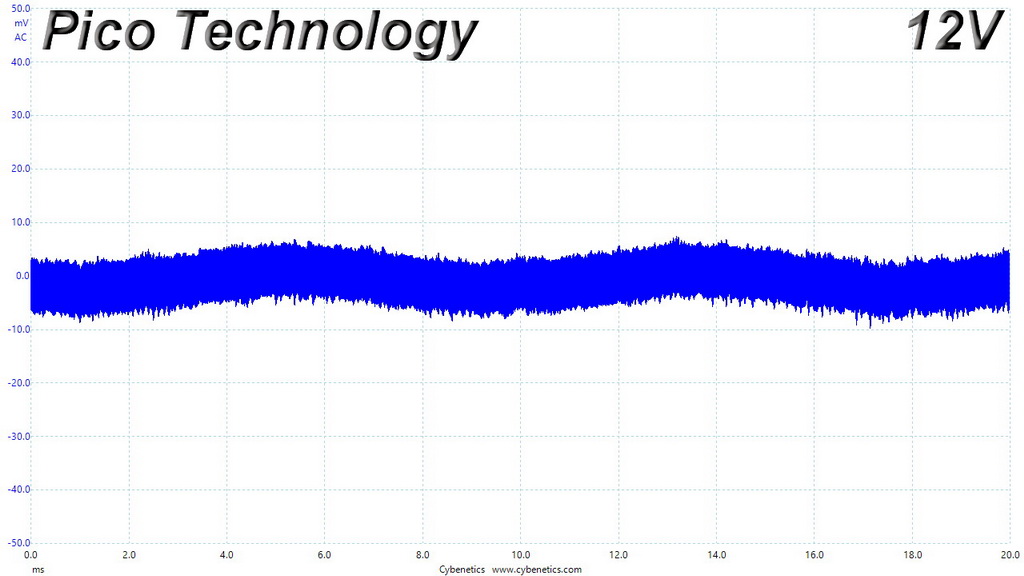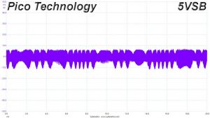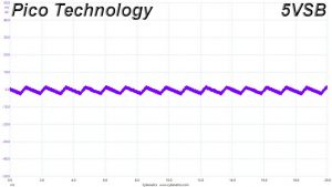 The following oscilloscope screenshots illustrate the AC ripple and noise registered on the main rails (+12V, 5V, 3.3V and 5VSB). The bigger the fluctuations on the screen, the bigger the ripple/noise. We set 0.01 V/Div (each vertical division/box equals 0.01V) as the standard for all measurements.