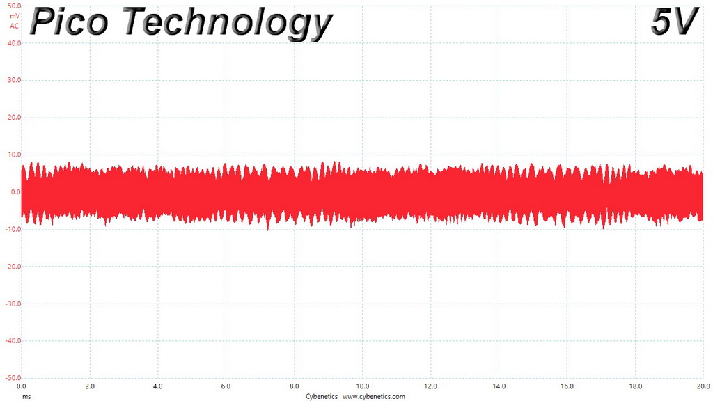 The ripple suppression is excellent on all rails, without using modular cables with in-line caps.