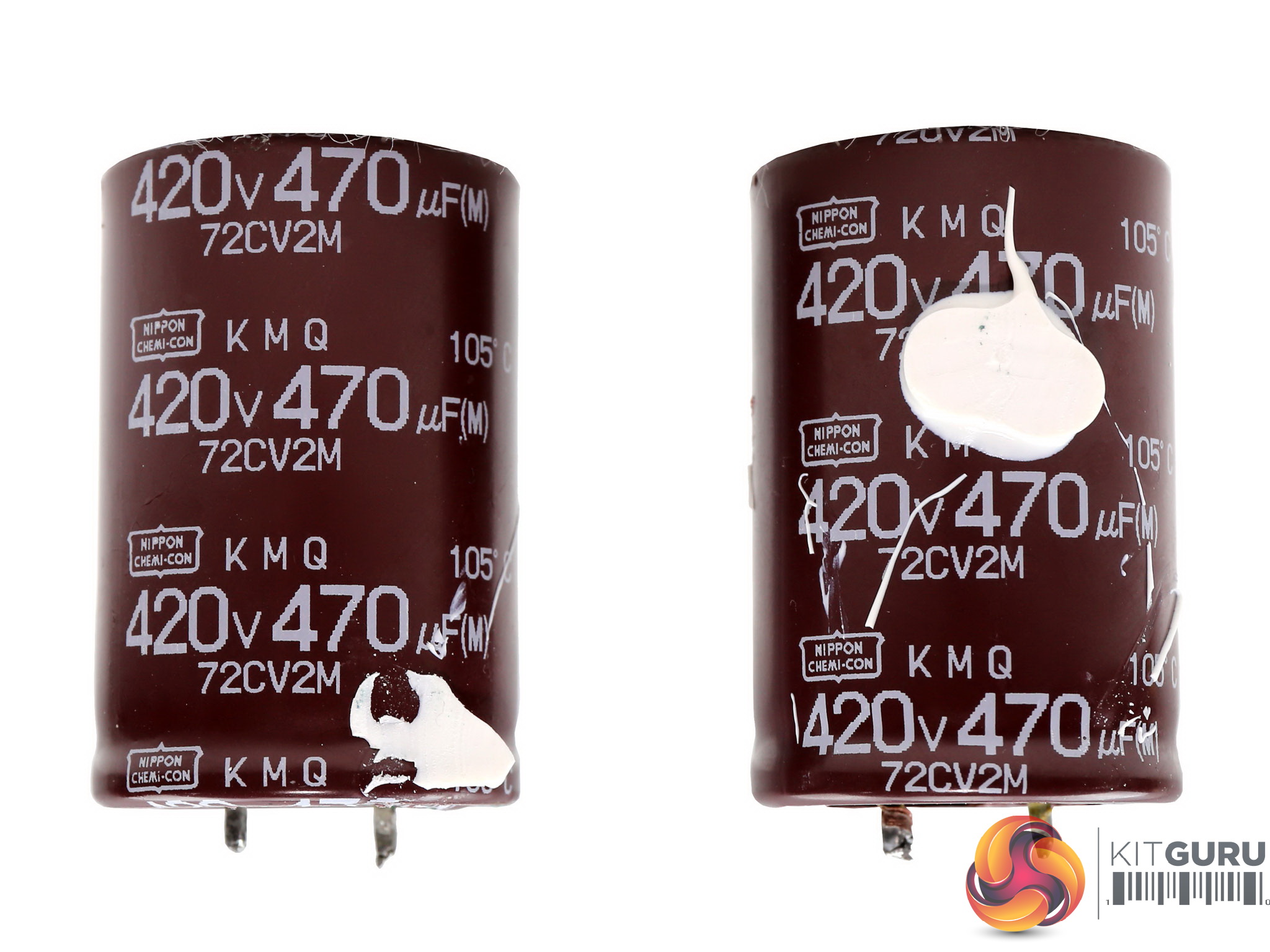 2x Nippon Chemi-Con (420V, 470uF, 2000h @ 105°C, KMQ) |