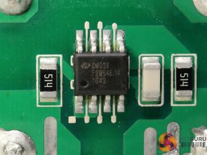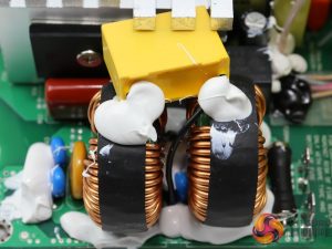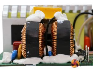 The main switching FETs are four Infineon IPP60R190C6, which are configured into a full-bridge topology. Their driver ICs are two Silicon Labs Si8230BD, soldered on the back of the main PCB. Finally, an LLC resonant converter is also used, to restrict the switching losses.