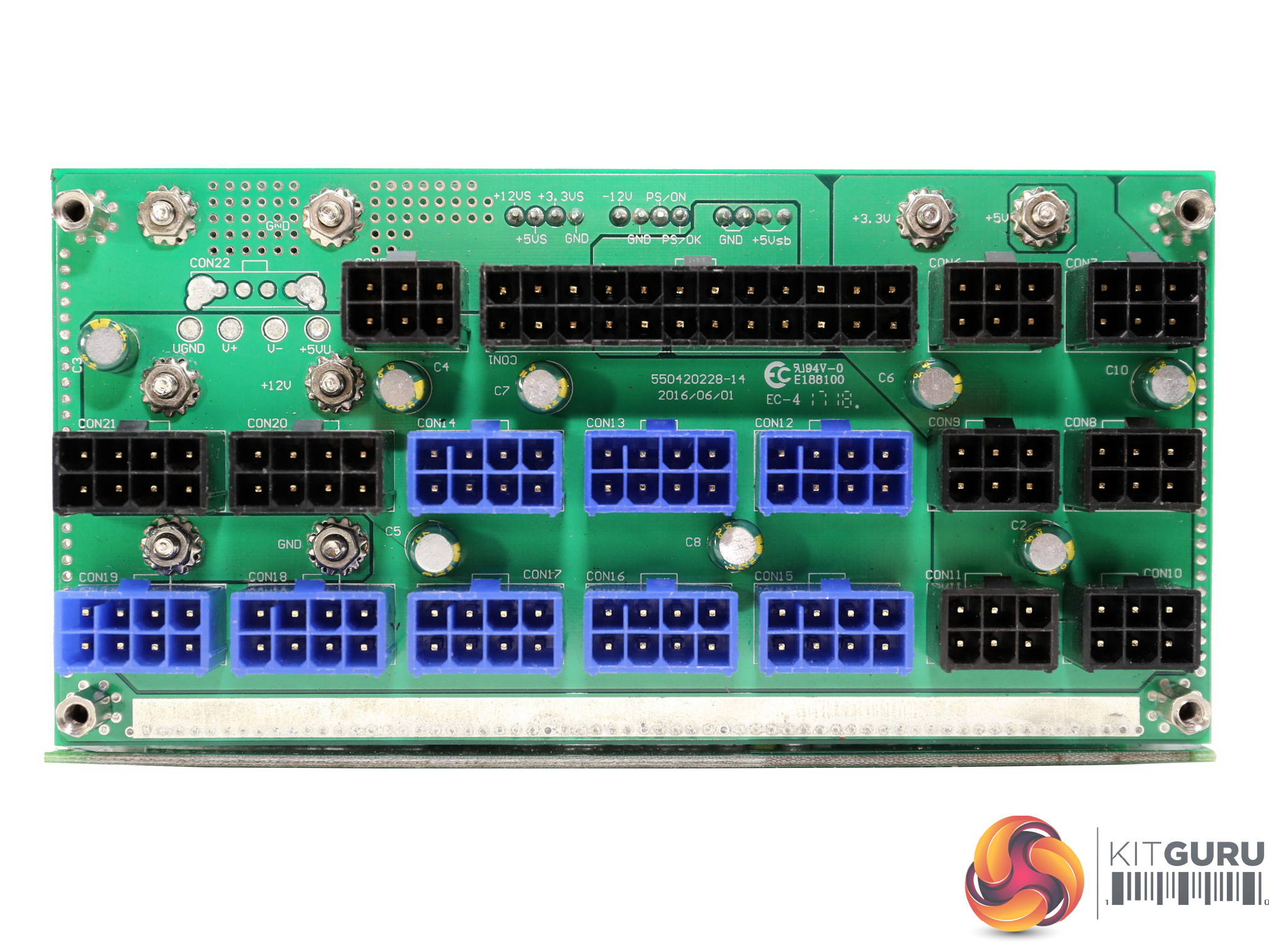 The voltage regulation modules that handle the minor rails, are installed onto a large PCB right behind the modular board.