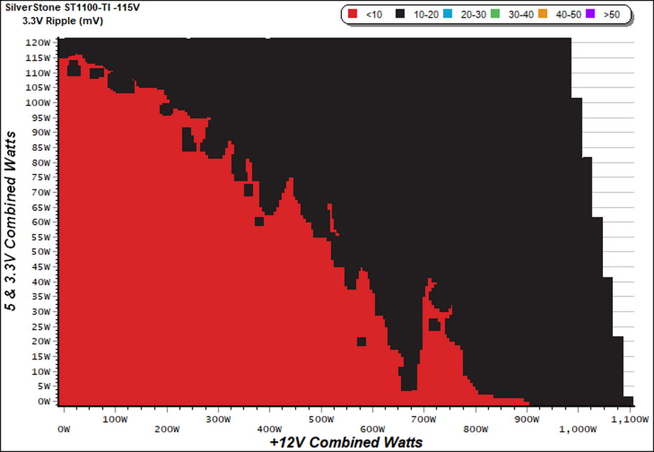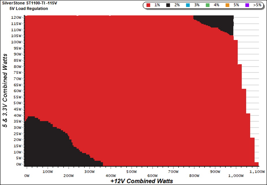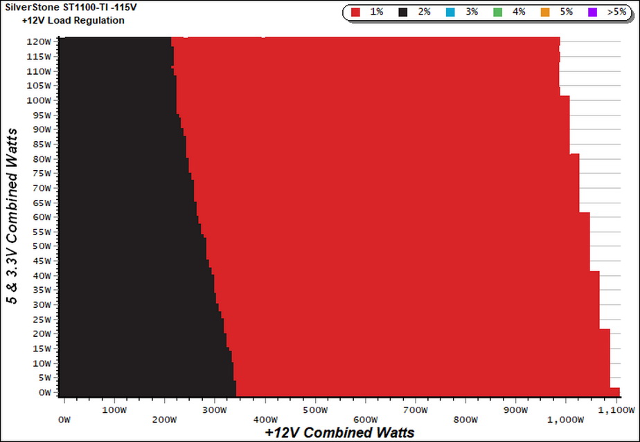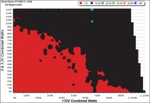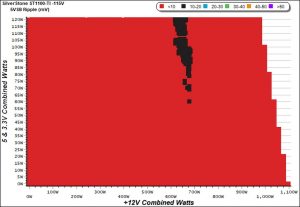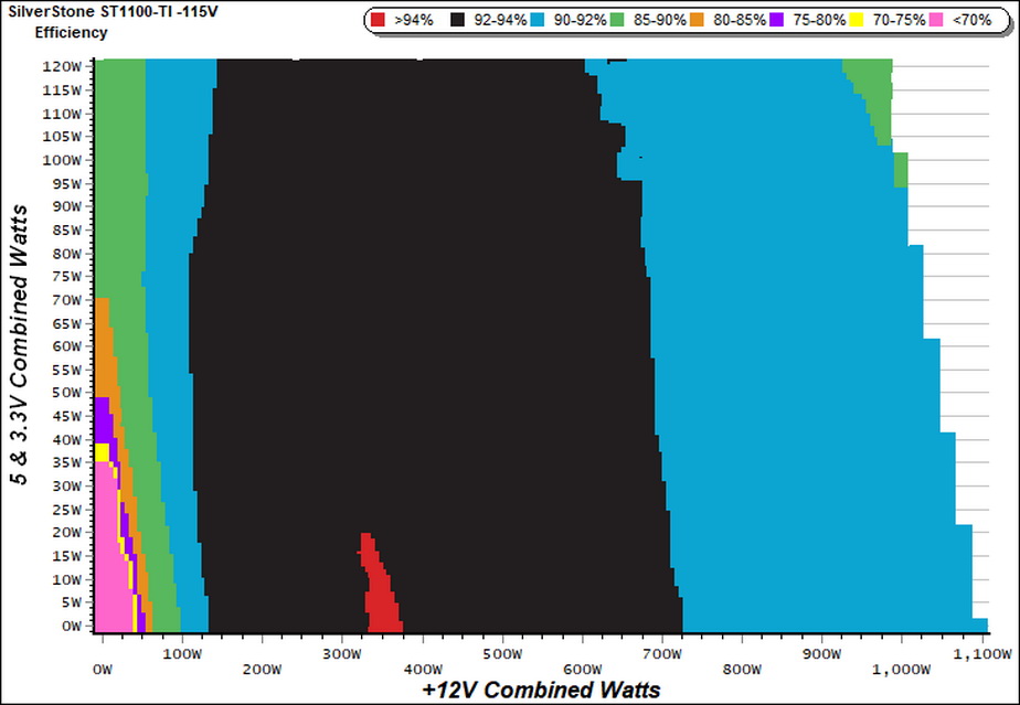 The region where the unit delivers between 92-94% efficiency is very large, however since this is a Titanium and ETA-A platform, we would like to see an even larger region with over 94% efficiency. We are perhaps getting too picky, but this model belongs to SilverStone's flagship line so we expect a lot.