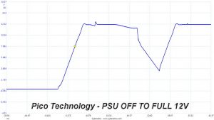In the second test, we dial the maximum load the +12V rail can handle and start the PSU while it is in standby mode