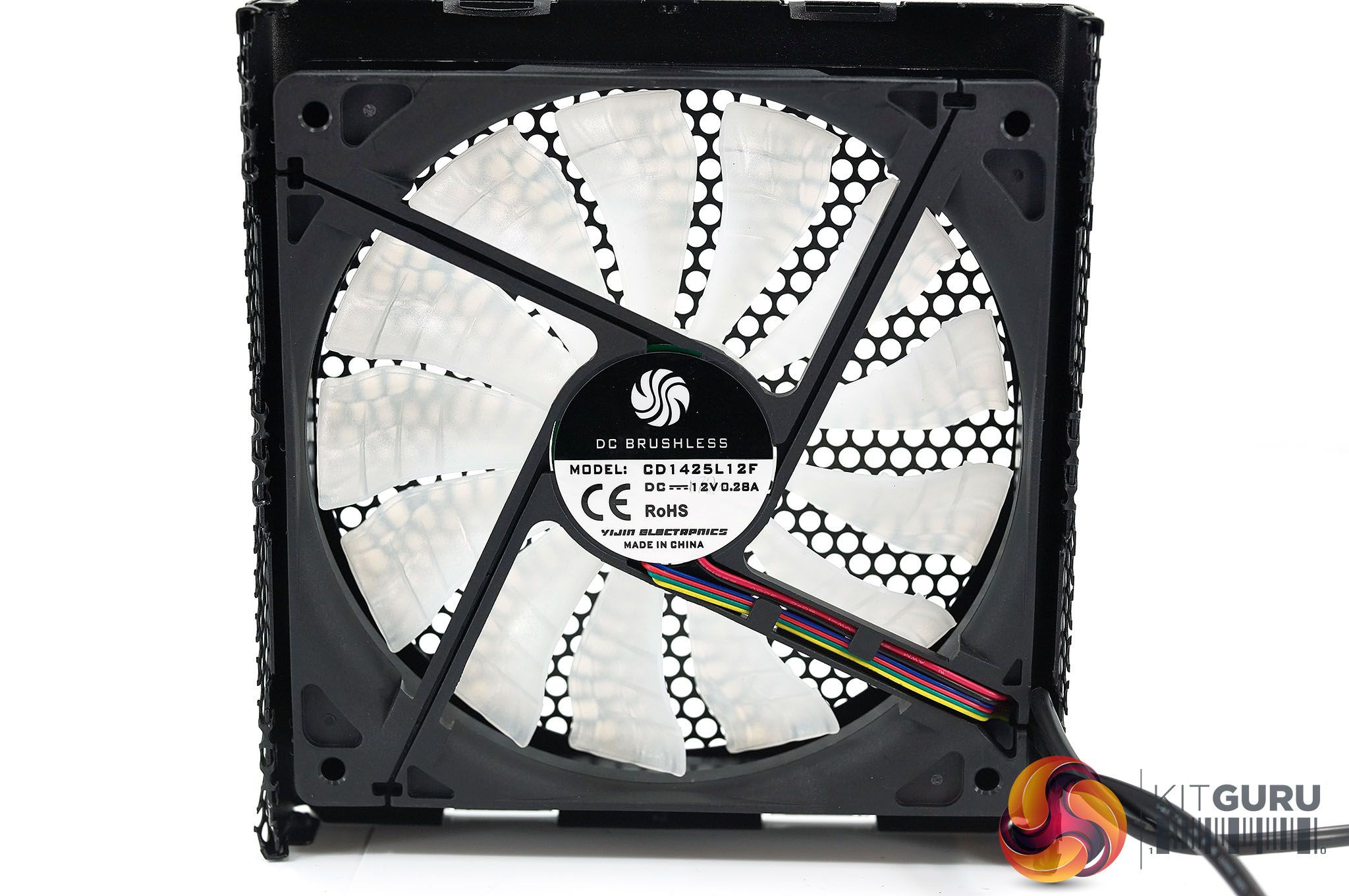 The YIJIN fan is fluid dynamic bearing with model number CD1425L12F and rated 12V 0.28A. There is very little information on this particular fan, but we were told it has been restricted to keep noise levels as low as possible.