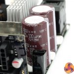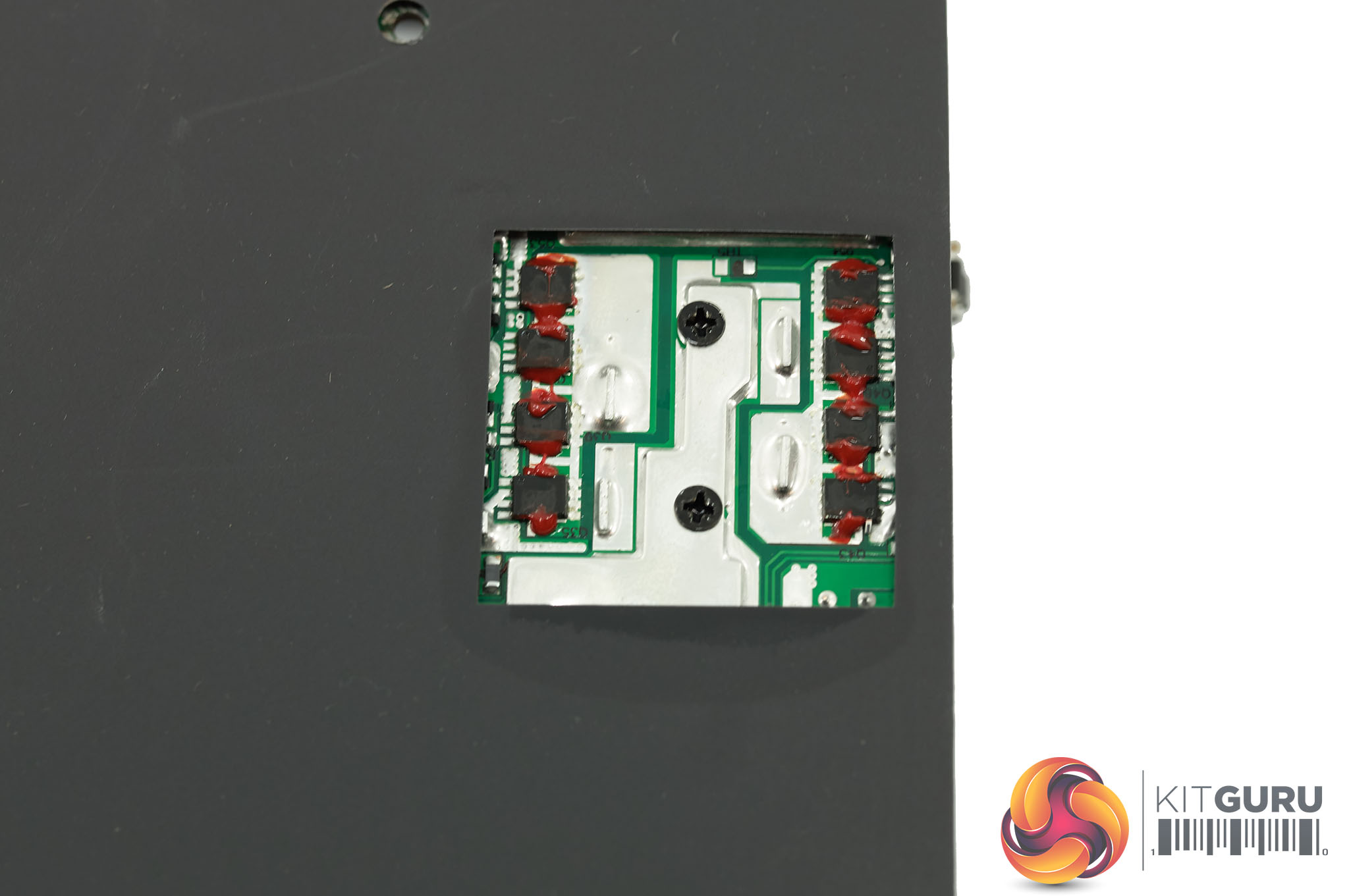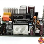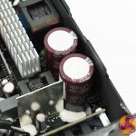 Chemi Con electrolytic caps are adopted on the modular board to deliver additional ripple filtering. The soldering on the main PCB is very good and Aerocool have attached a thermal pad to the outer case to offer additional cooling for the +12 FETs.